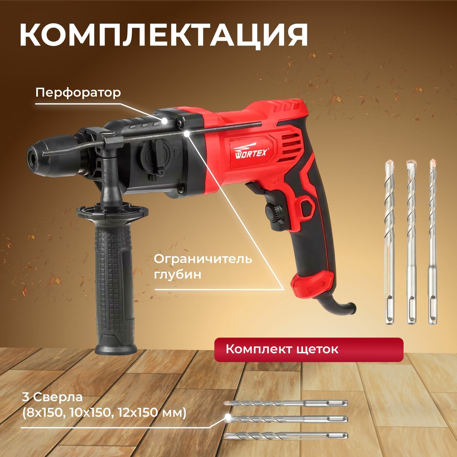 Перфоратор WORTEX RH 2427 в коробке + набор буров