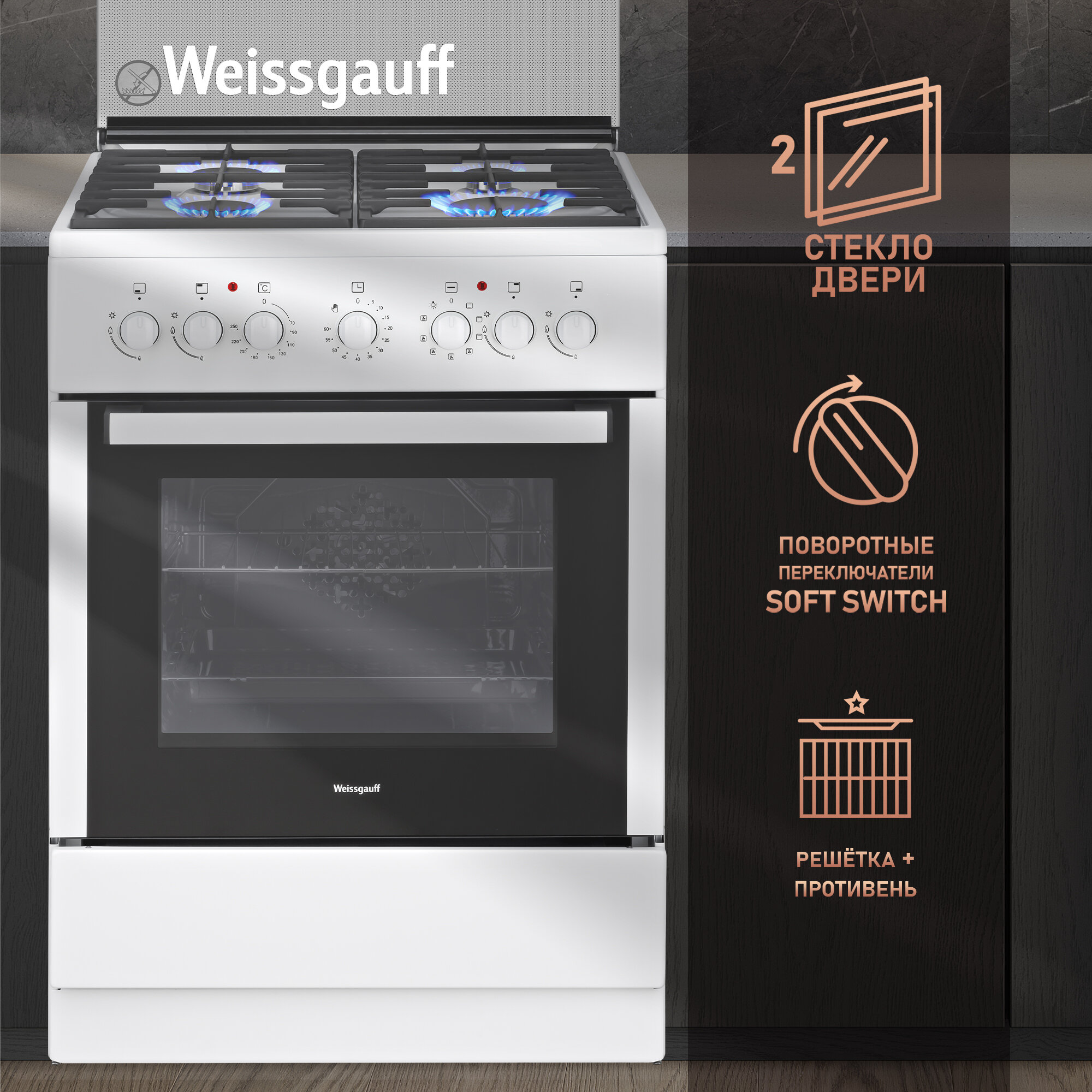 Газовая плита Weissgauff WCS К1К62 WGM