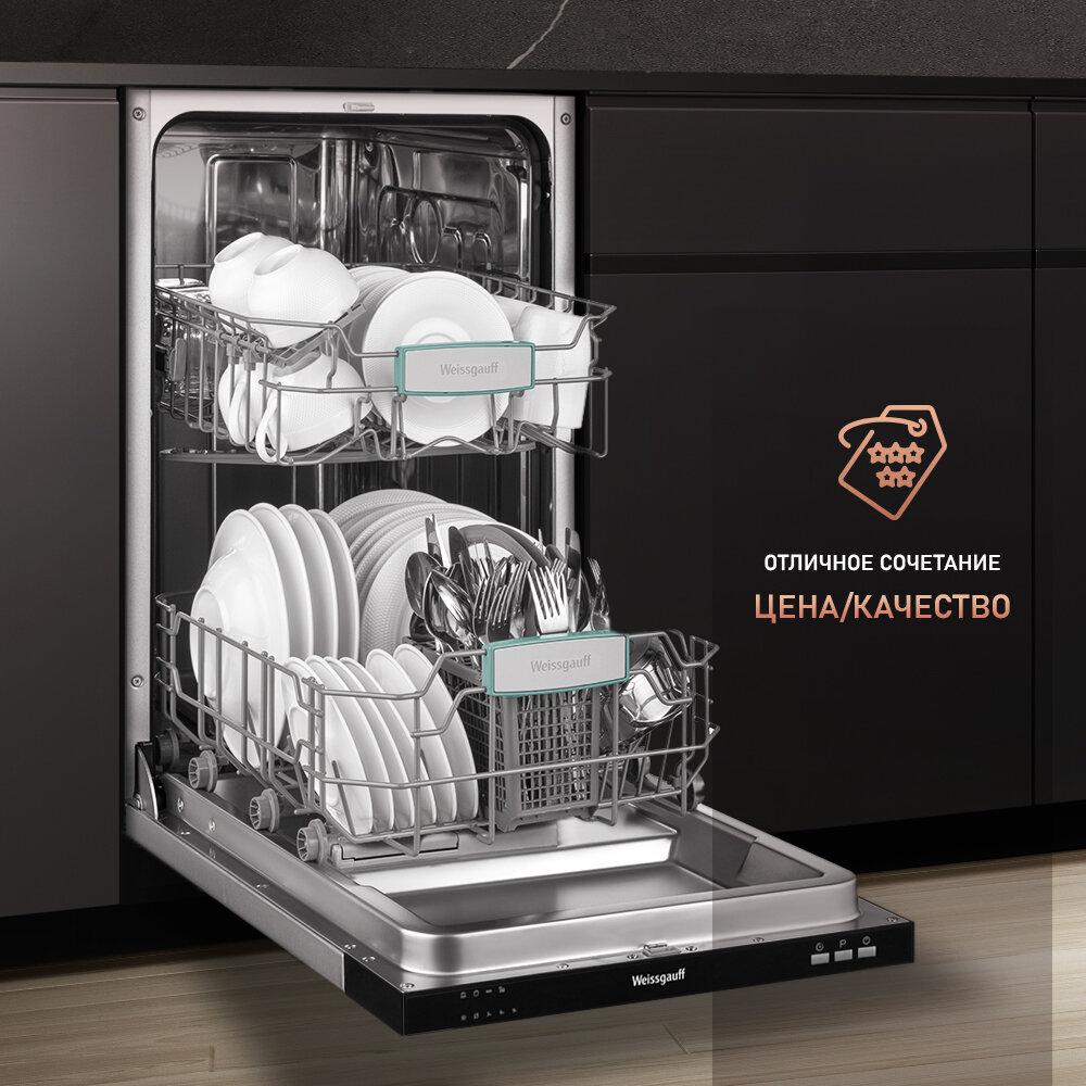 Встраиваемая посудомоечная машина узкая 45 см с лучом на полу Weissgauff BDW 4004 (модификация 2024 года), А++ интересное: