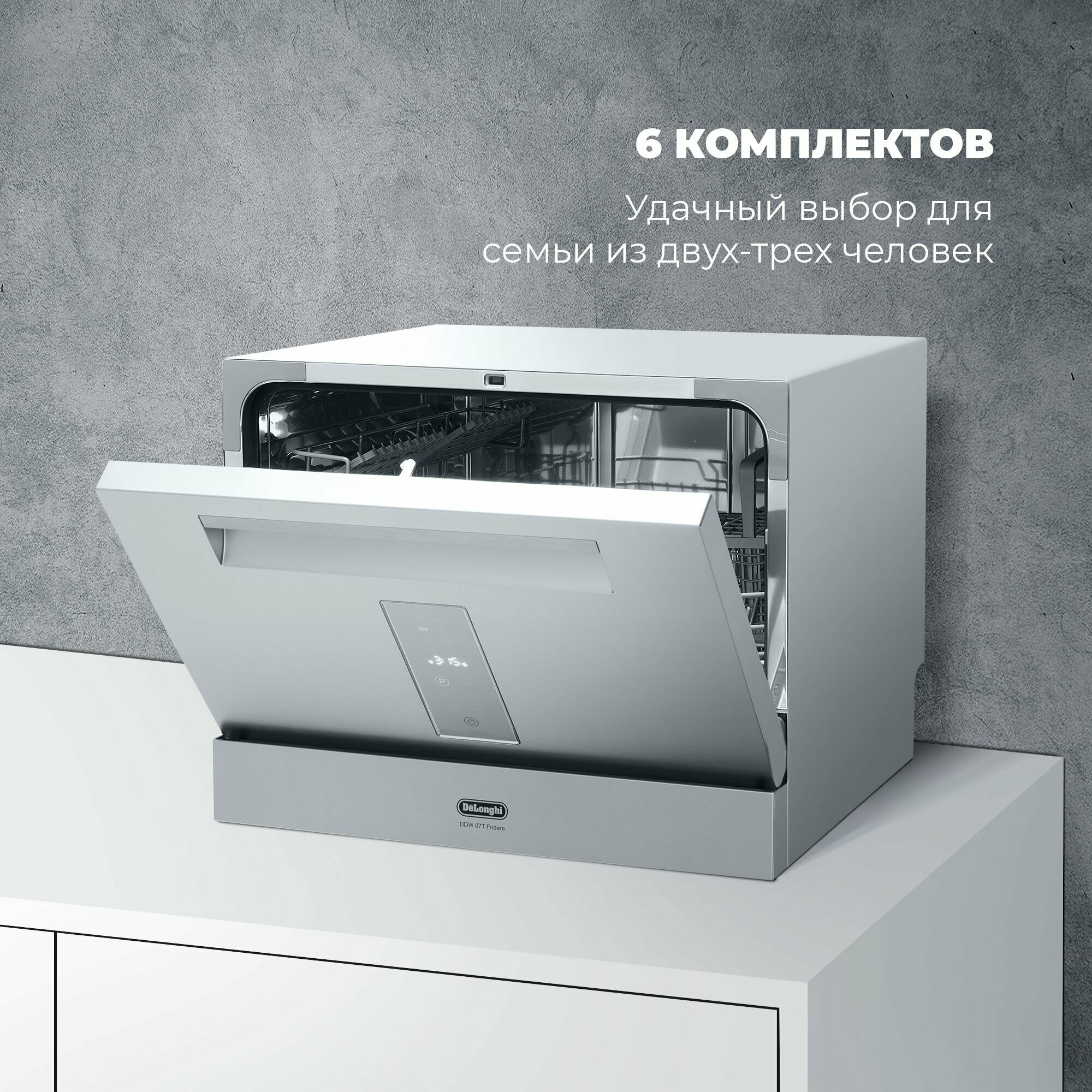 Настольная компактная посудомоечная машина DeLonghi DDW 07T Fridere, 6 комплектов, половинная загрузка, 55 см