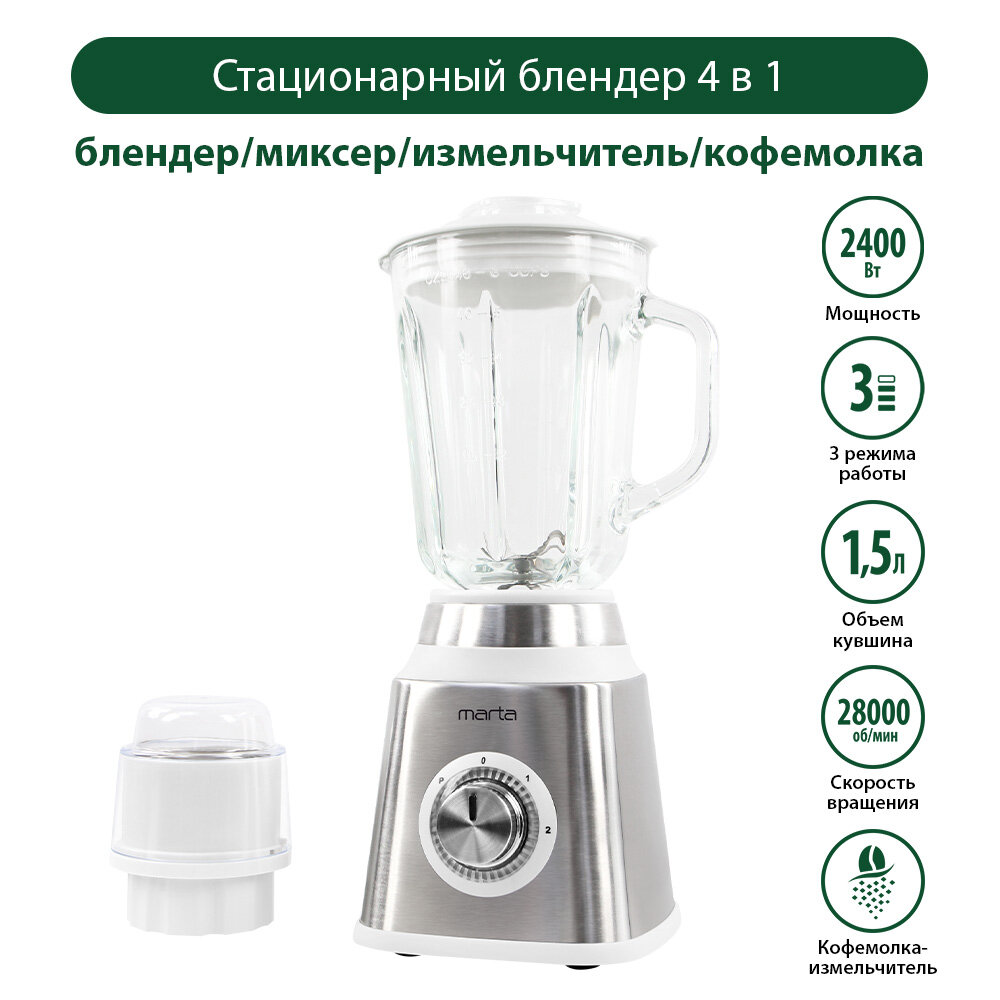 Стационарный блендер MARTA MT-1594 белый/сталь