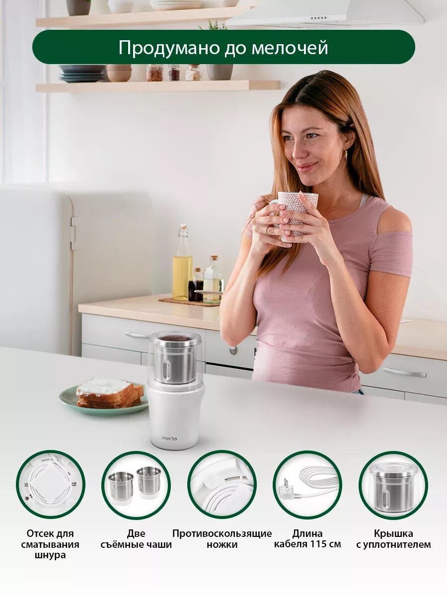 Кофемолка электрическая мощная, 2 чаши, 100 г, 500Вт интересное: