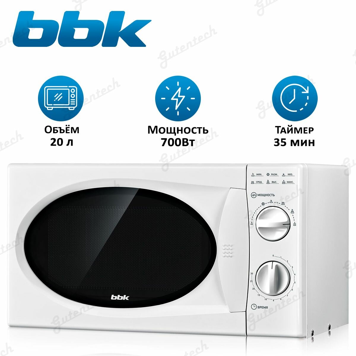 Bbk 20MWS-715M W Микроволновая печь, 700 Вт, 20 л, белый