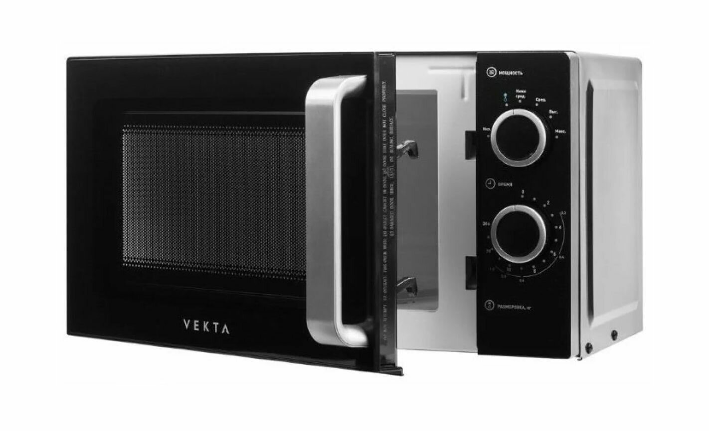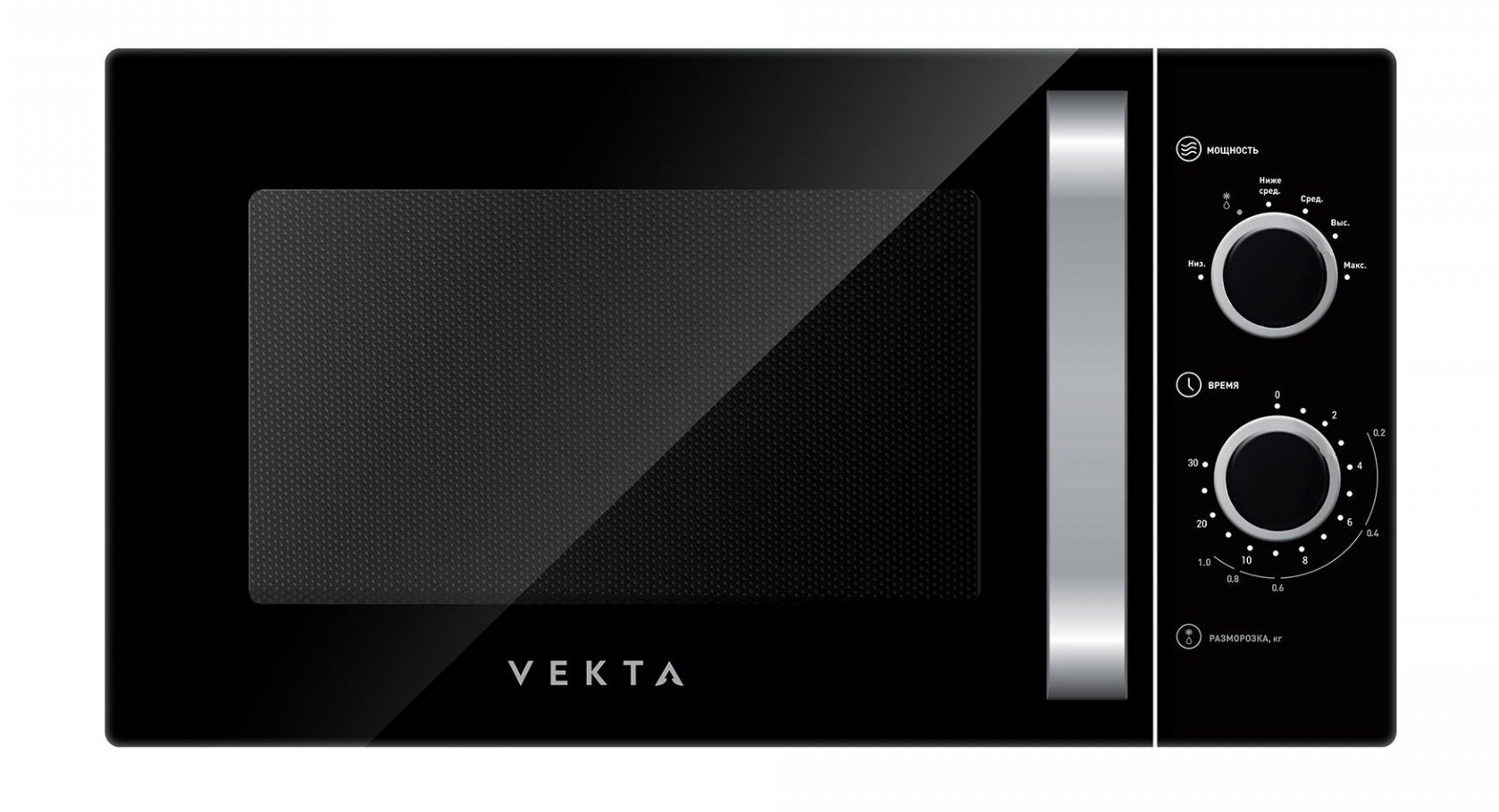 Микроволновая печь VEKTA V-20 л, мощность 700 Вт, механическое управление, таймер, черная (MS720ATB)
