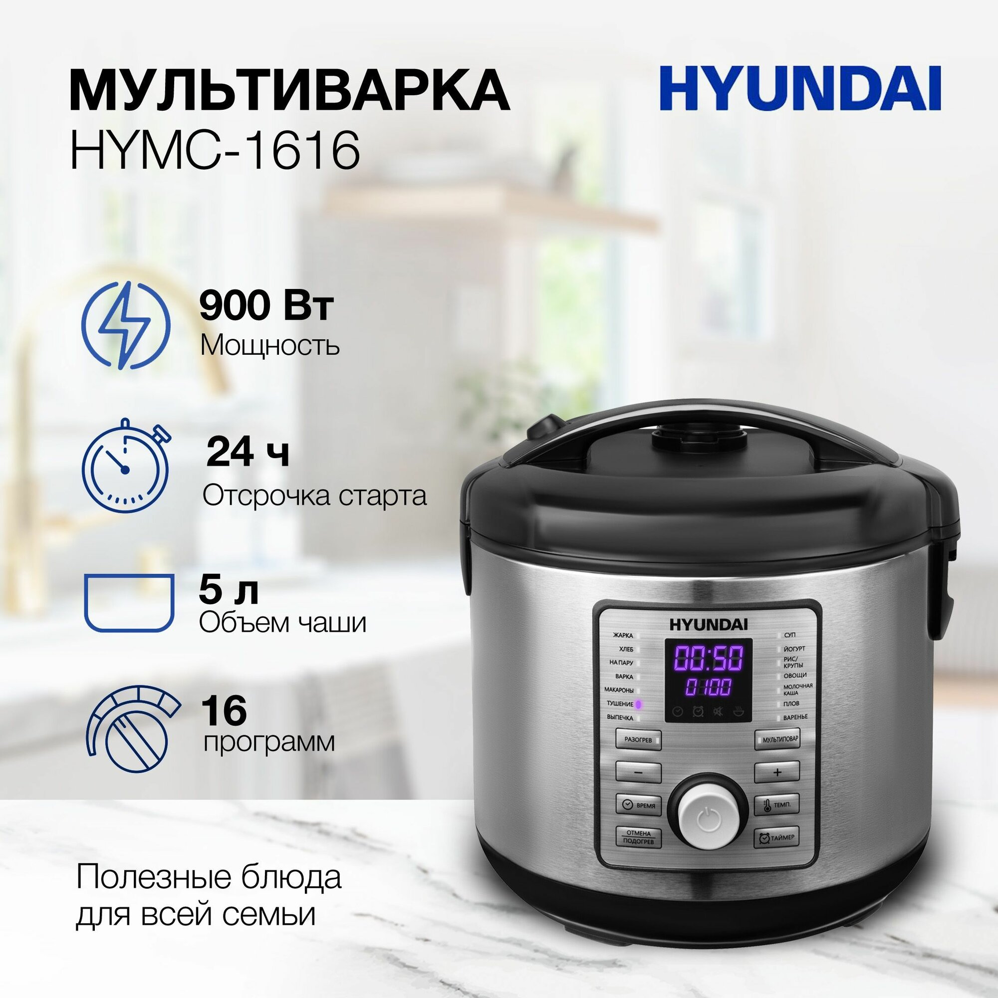 Мультиварка Hyundai HYMC-1616, 900Вт, серебристый/черный