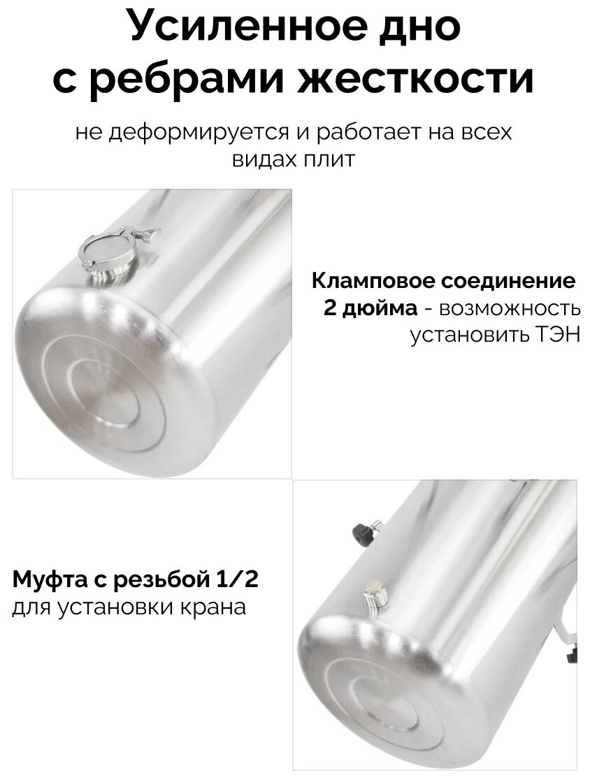 | Отзыв: | В целом покупкой доволен. Первый тест-драйв кастрюля выдержала. Придётся всё же заменить китайский манометр на проверенного производителя, а это уже дополнительные расходы. Хотелось бы видеть на месте заглушки под кламп не простую гладкую пластину, а нормальную кламп-заглушку с выемкой под силиконовую прокладку. Самогонщики поймут.