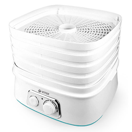 Сушилка для овощей и фруктов Vitek VT-5053, 250 Вт, 5 ярусов, бело-голубая