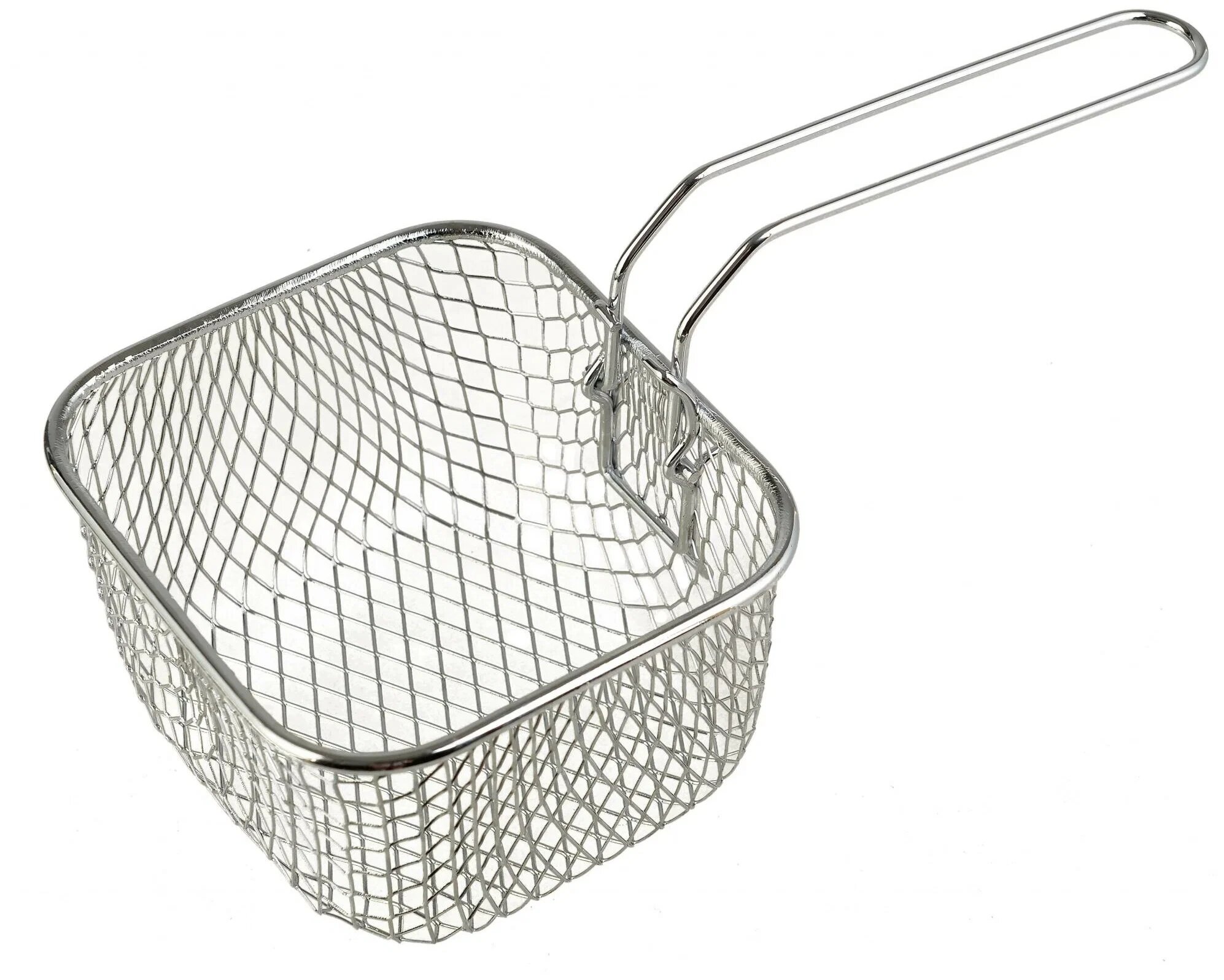 , жаль сломалась, вот и купили эту из-за цены, тк та была тоже самая дешёвая, но нареканий за 12 лет небыло. ? крупные яцейки в сетке, выпадают мелкие картофнлинки, приходится вылавливать отдельно. ?выпуклое дно, опять же непонятное решение. ? удобное крепление сетки на край фритюрницы, позволяет стечь маслу. ?размер как трёхлитровая кастрюлька. Не занимает много места на столешнице. |