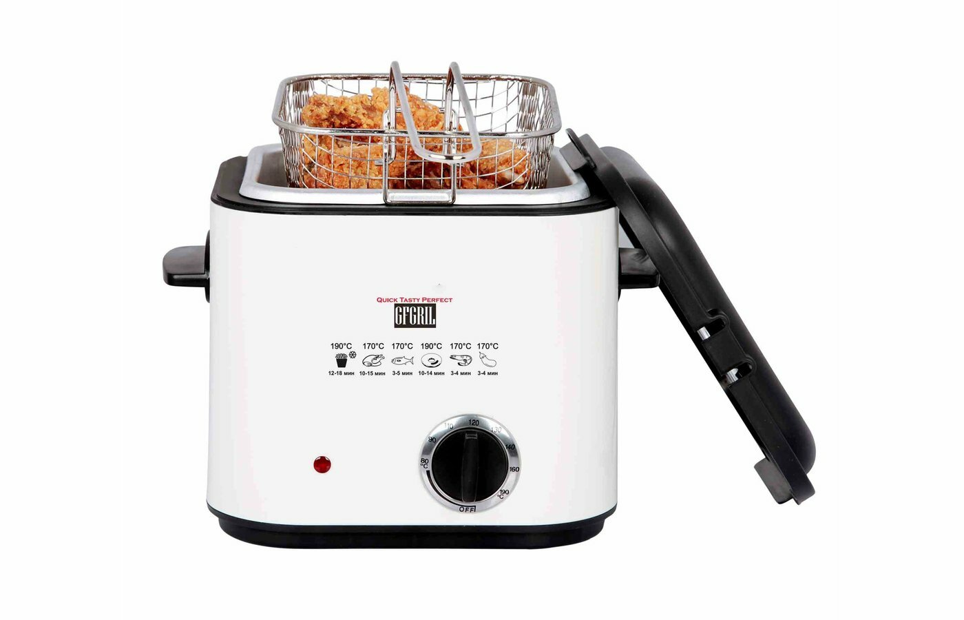 GFGRIL электрическая фритюрница GFF-012 Easy Cook, быстрый нагрев до 190, электрофритюрница объем 1.2 л., высокая мощность, фритюрница со съемной корзиной, фритюрница со съемной крышкой