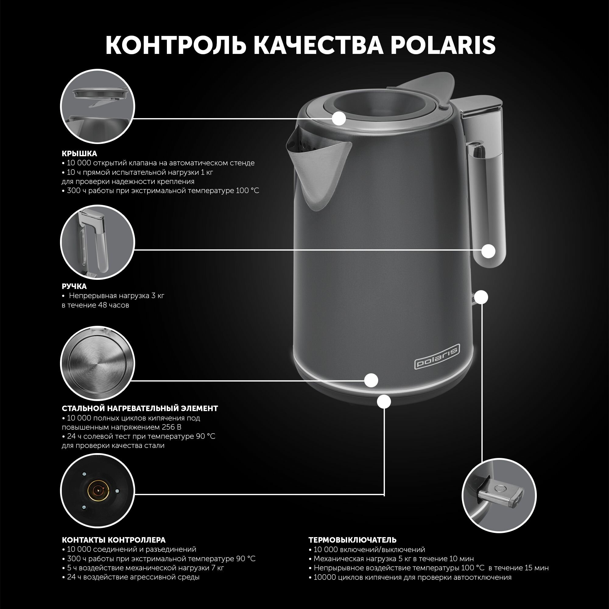 Электрический чайник Polaris PWK 1746CA WATERWAY PRO металлический корпус / Серый