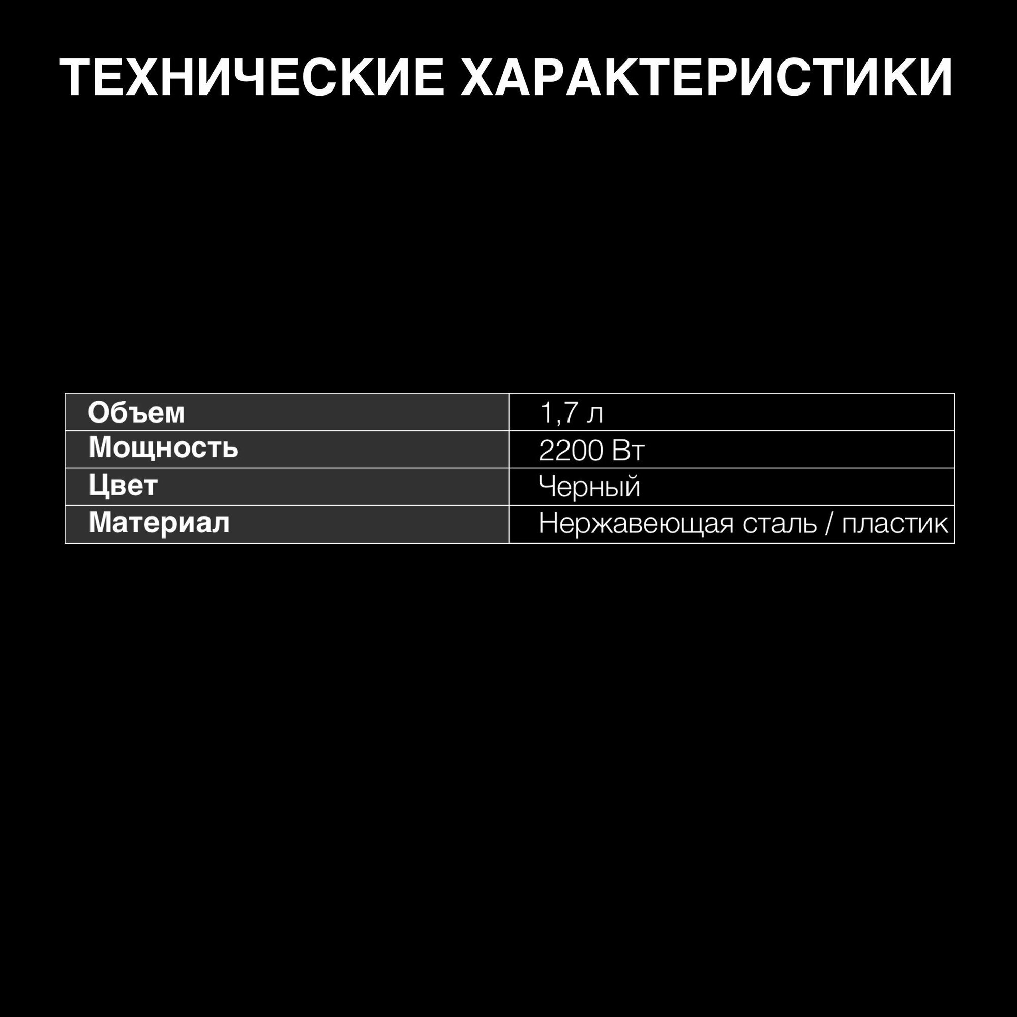 Электрочайник Hyundai HYK-S4501 цвет черный/бронзовый, объем 1.7, мощность 2200Вт