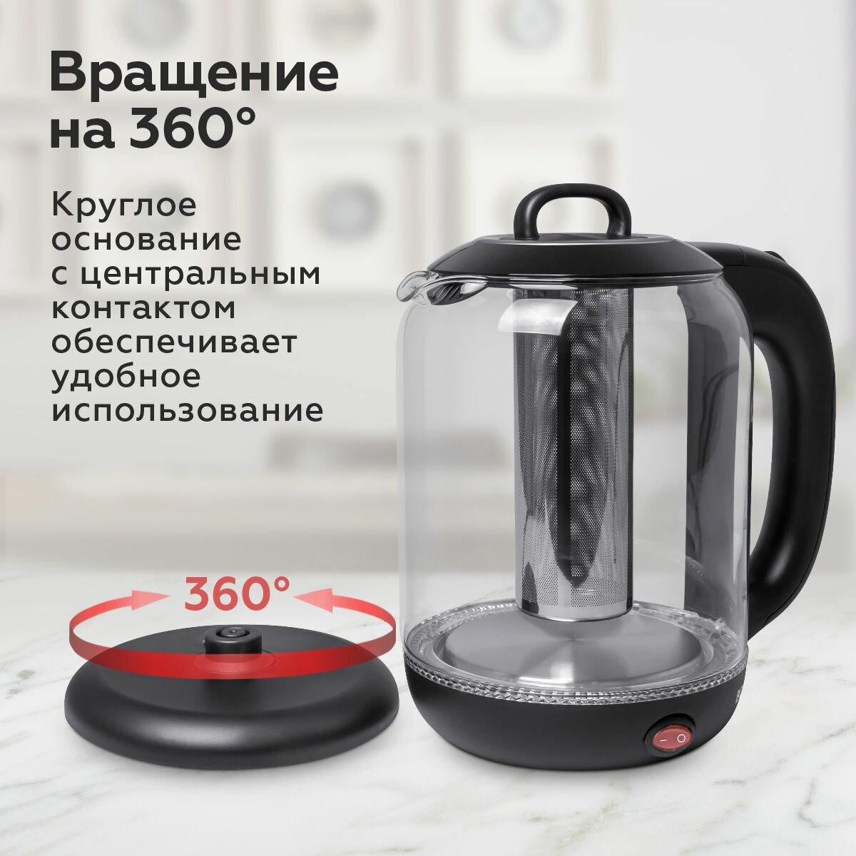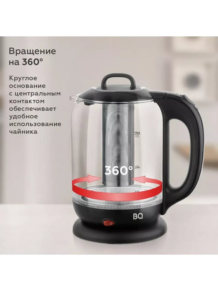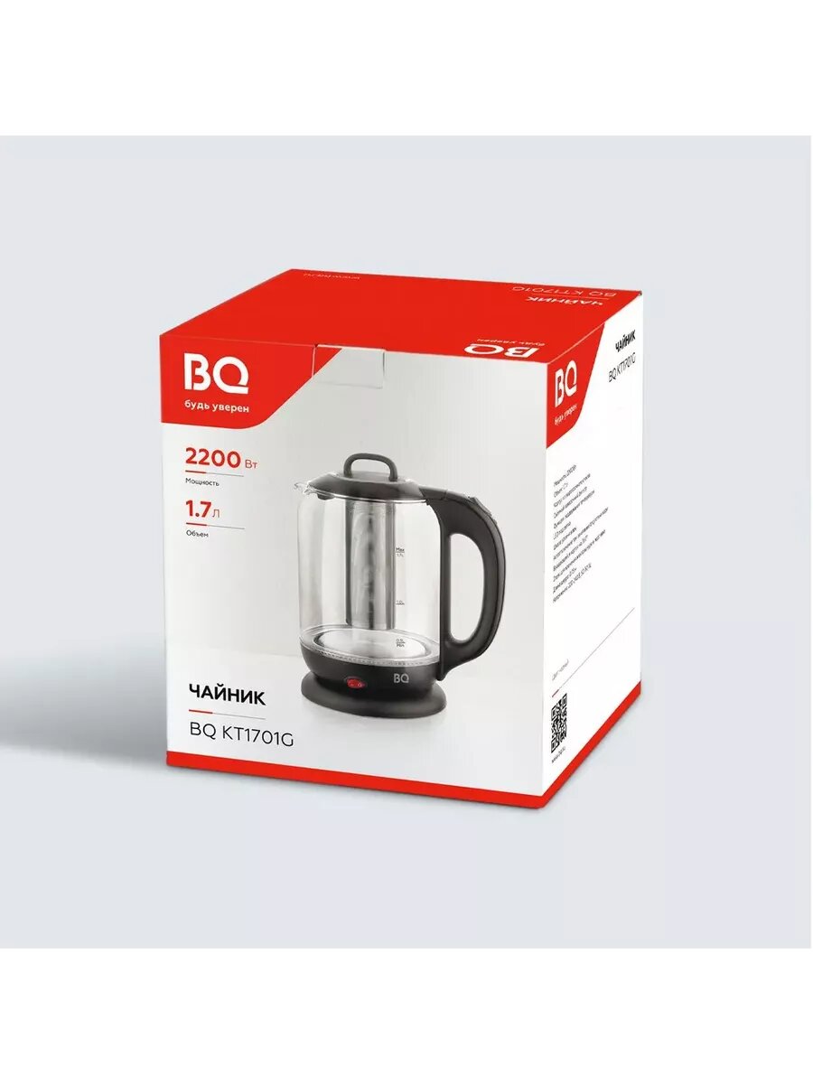 Чайник электрический с заварником BQ KT1701G черный / Стеклянный / 1.7 л 2200 Вт