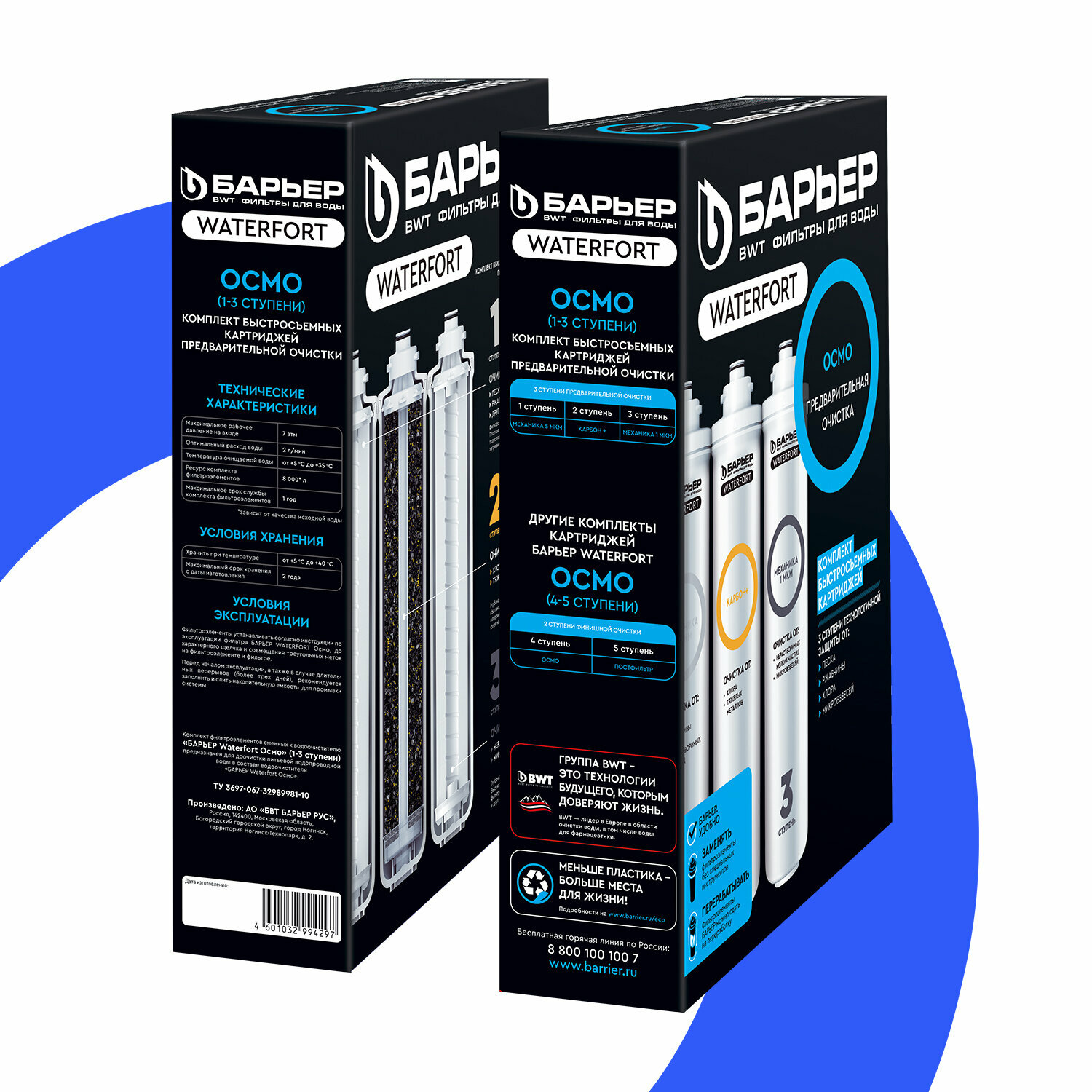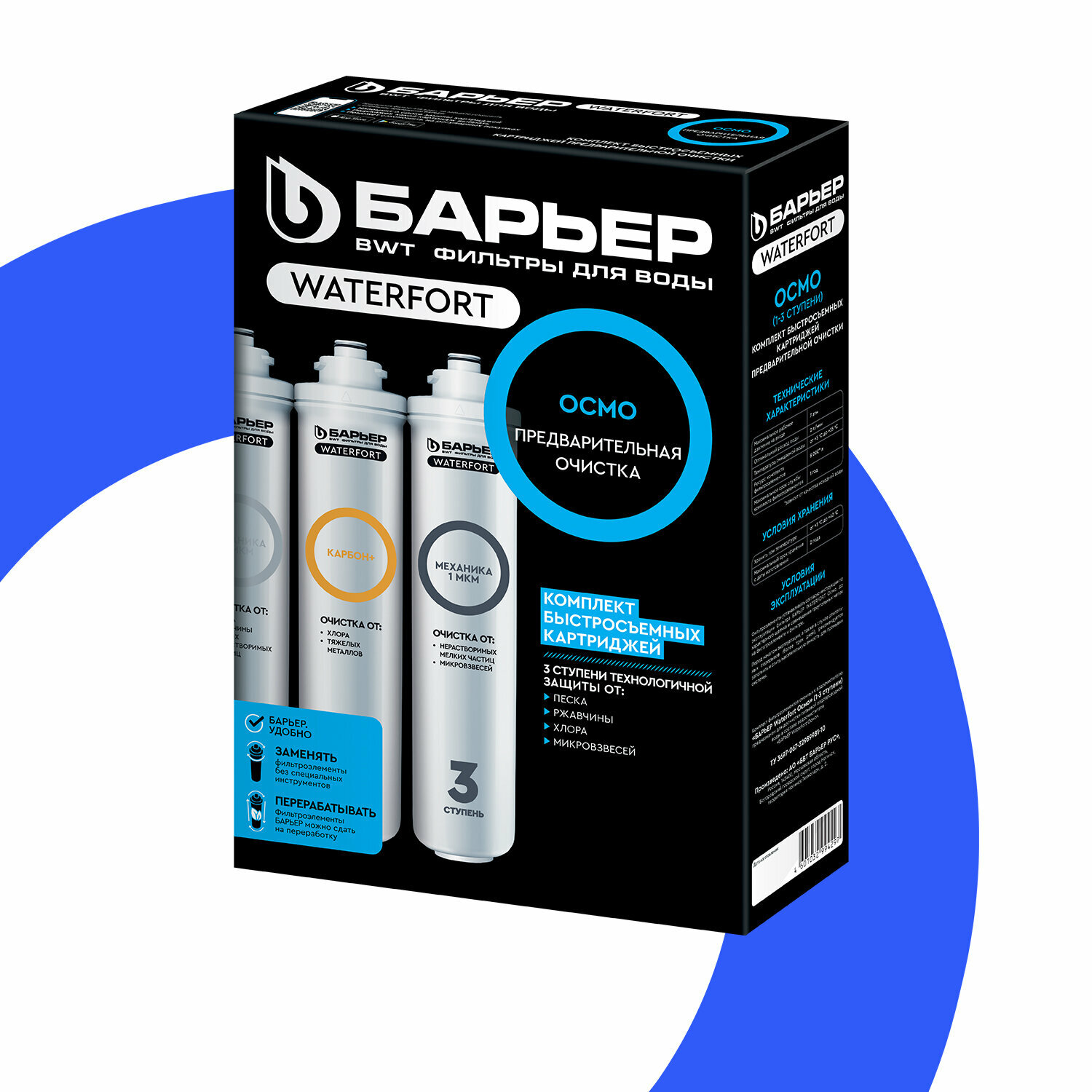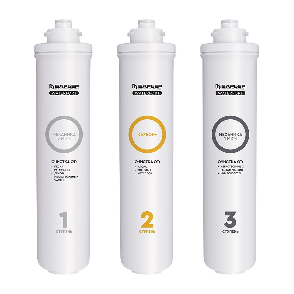 Купить БАРЬЕР WaterFort осмо Предфильтр (1-3 ступени), комплект картриджей для обратноосмотического фильтра под мойку, предварительная очистка