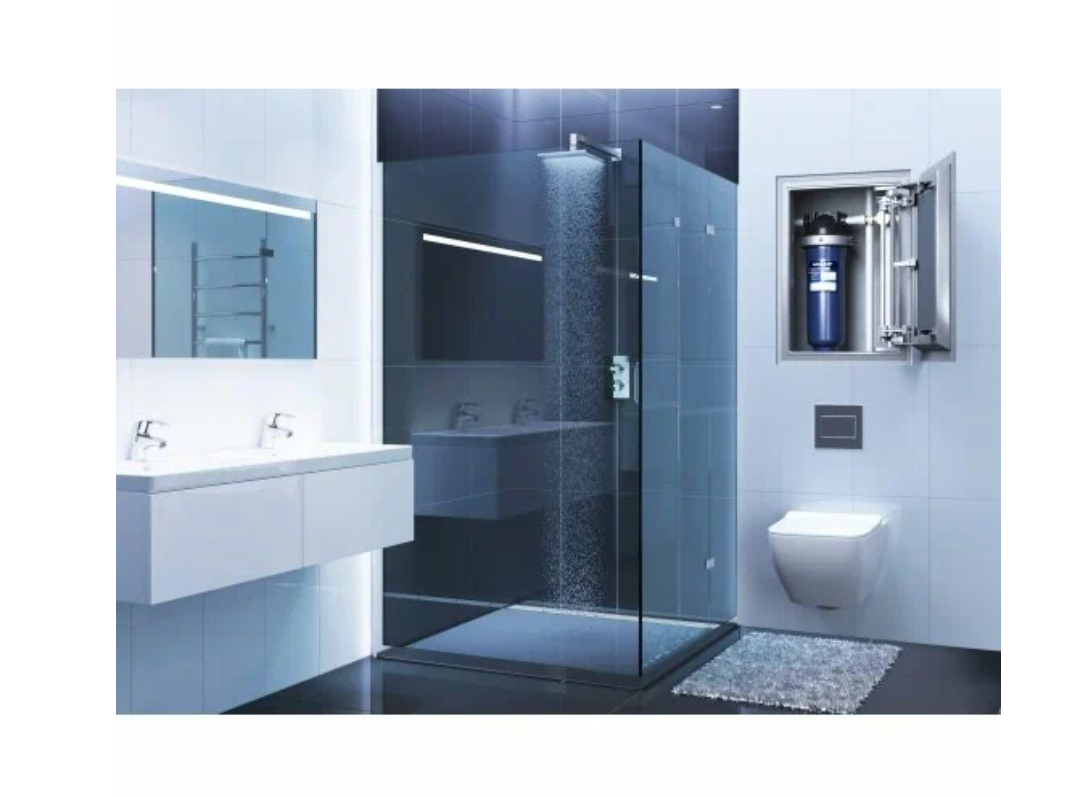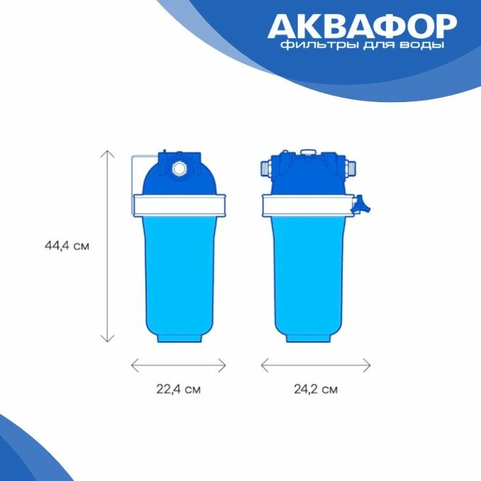 Убирает ржавчину и другие примеси. Вода после фильтра голубая. |