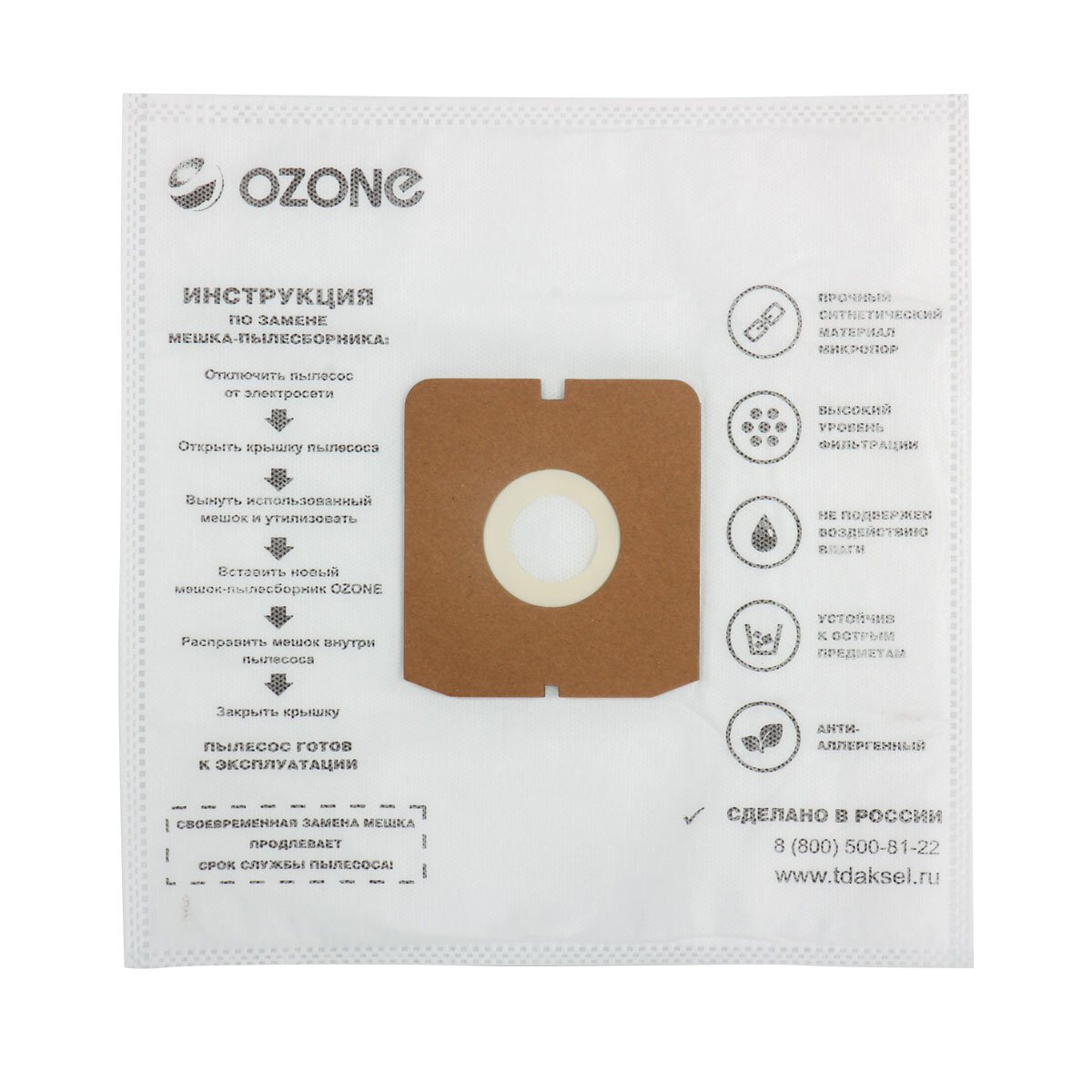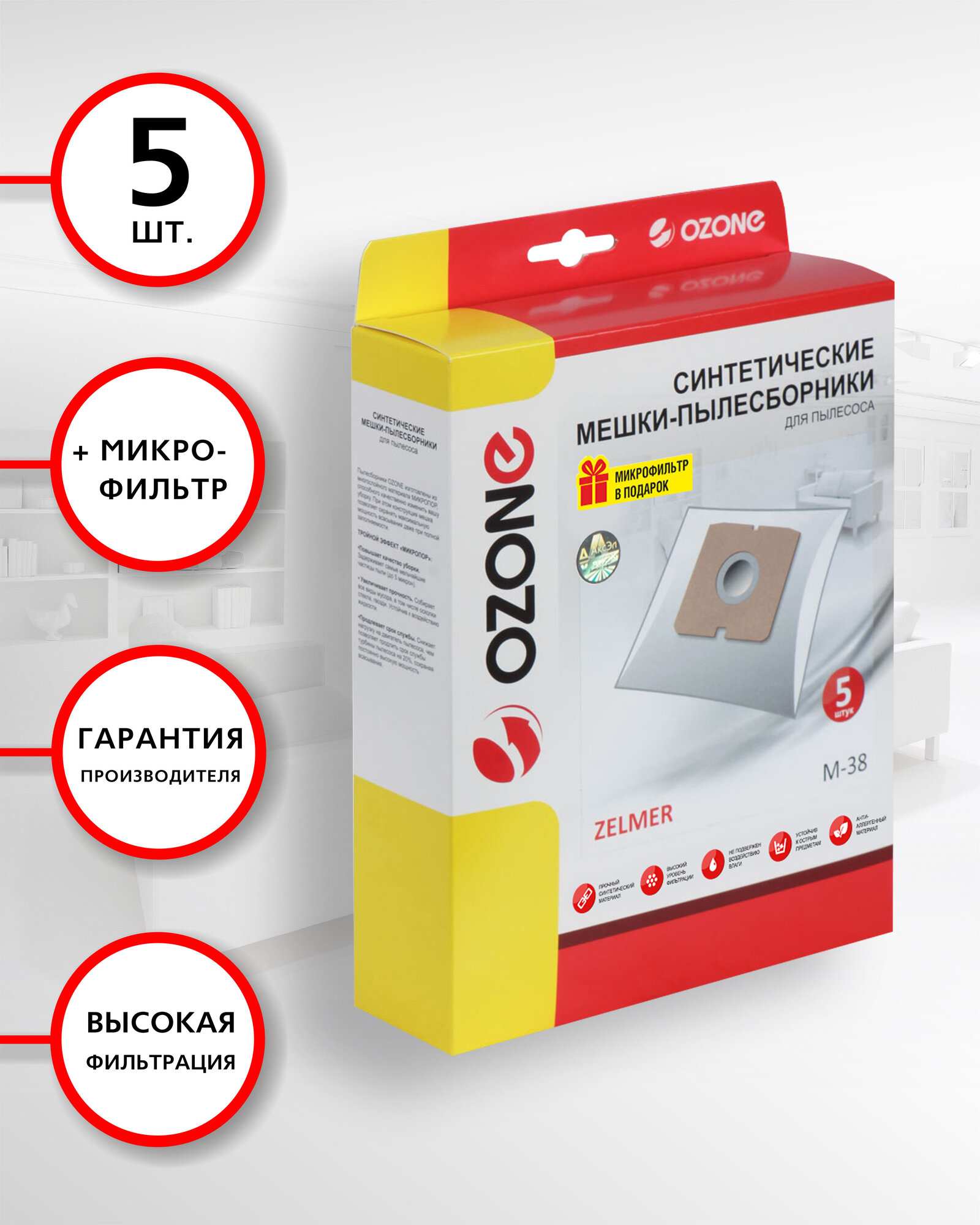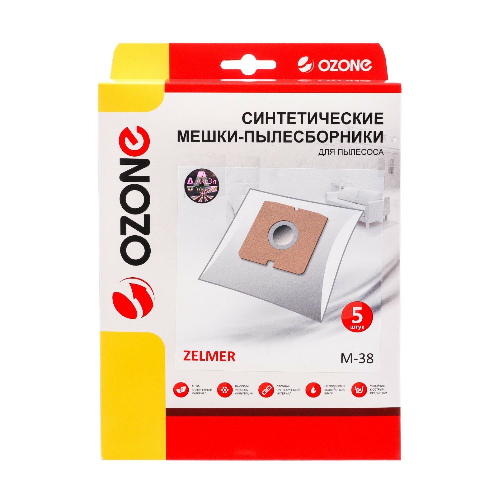 Синтетические мешки-пылесборники Ozone M-38 для пылесоса ZELMER, FAKIR, HANSEATIC, OTTO, 5 шт