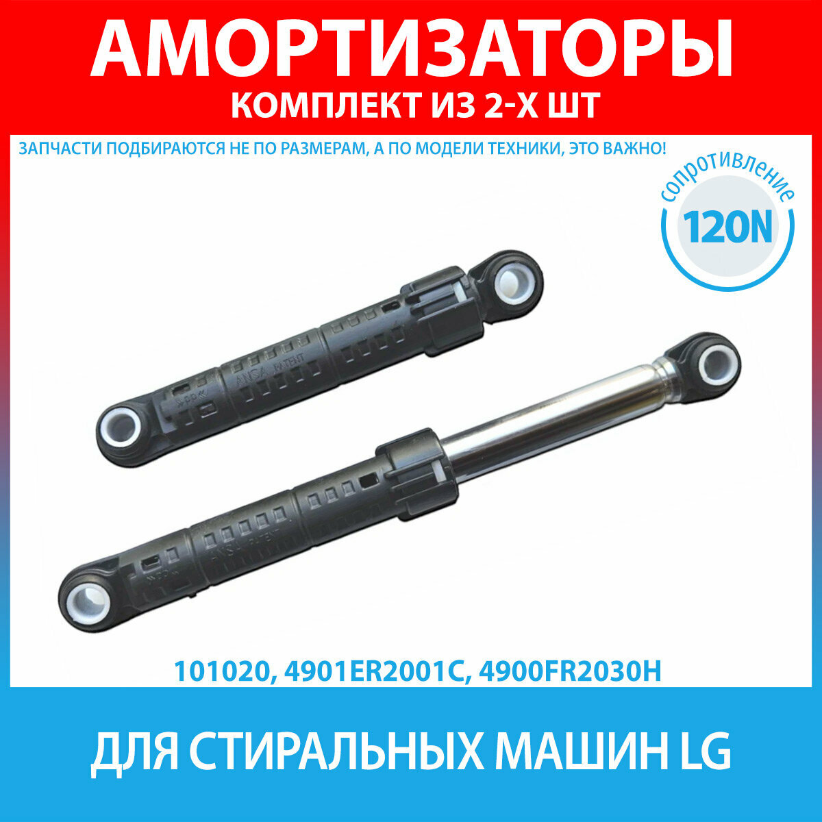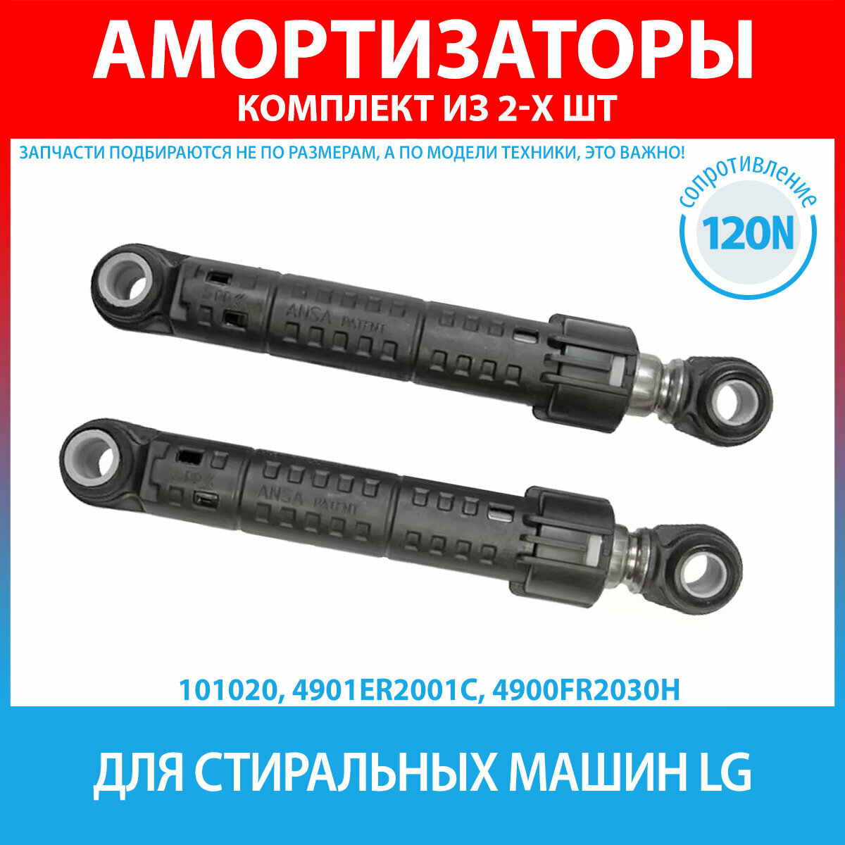 Амортизаторы для стиральной машины LG (комплект 2 шт) 120N Ansa 4901ER2001C 4900FR2030E, 4900FR2030J, 4900FR2030D, 4900FR2030H, LG5000, SAR003LG