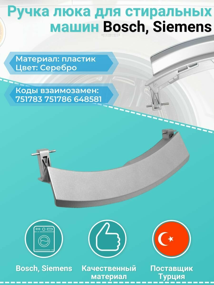 Ручка дверцы люка для стиральной машины Bosch Logixx 8, Avantixx 9, Siemens, 751786