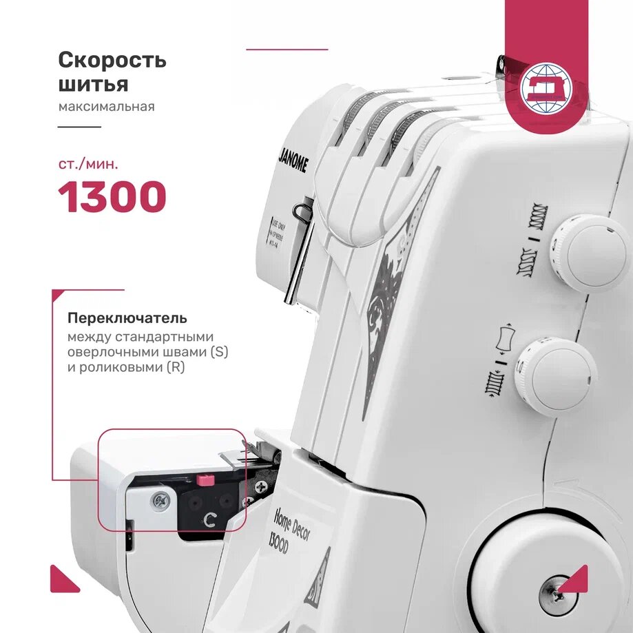 Купить Оверлок Janome HomeDecor 1300D, 3-х/4-х ниточный, 8 видов швов