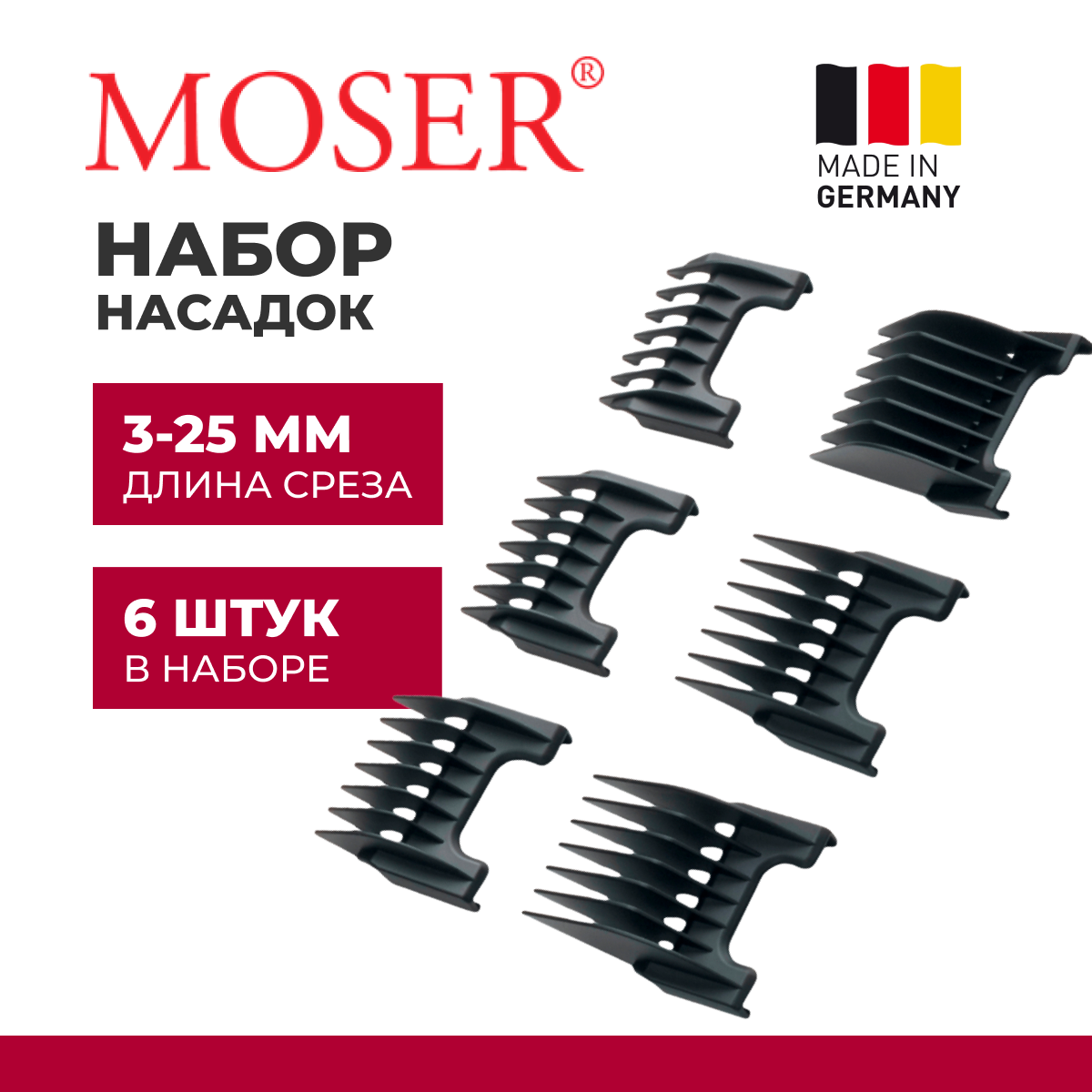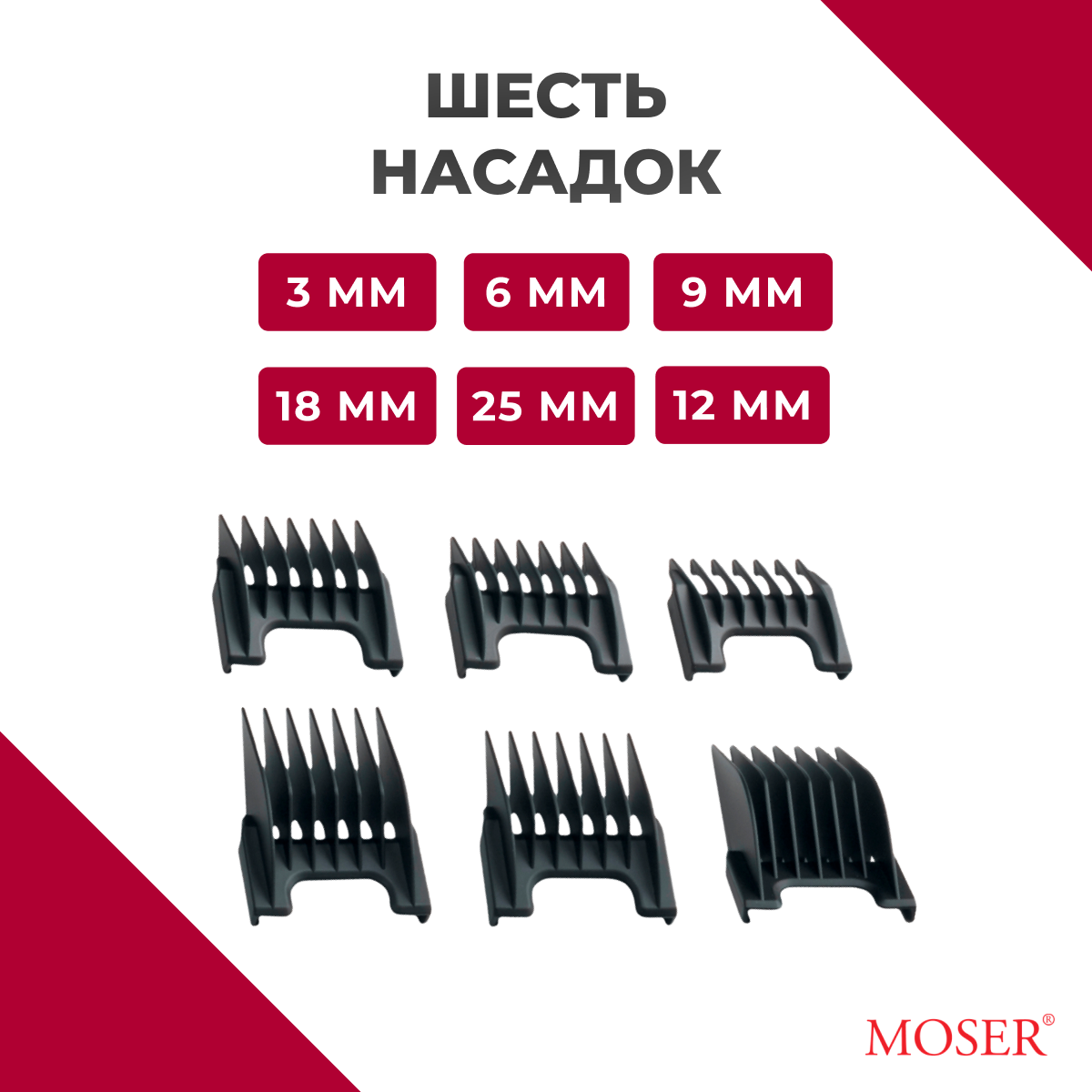 Набор насадок Moser 3/6/9/12/18/25 мм 1881-7170