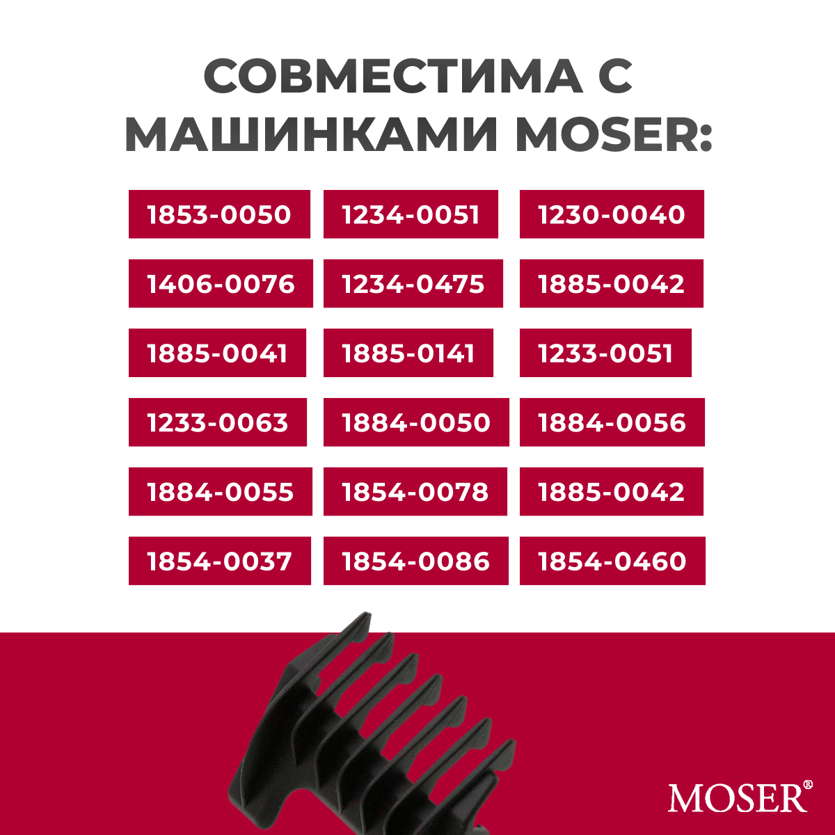 | Дополнительная информация | совместима с машинками Moser и Wahl серий 1170 (Fox, Rex, Opal, Opal Pro), 1230 (Primat, Rex), 1233 (Primat Adjustable, Rex Adjustable), 1234 Primat 2 in 1, 1234 FlexiCut 2in1, 1400, 1660 TrendCut, 1661 TrendCut Li+, 1852 Edition, 1853 (Titan, Styling III), 1854 (Arco, Genio Plus), 1855 Power Plus, 1871 ChromStyle Pro, 1872 Super Cordless, 1872 Super Groom, 1873 VarioCut, 1881 Easy Style, 1884 Li+Pro, 1886 Neo, 1888 Li+Pro2, 4212-0470 Beretto, 4212-0471 Beretto Stealth, Ermila 1870 Bellissima, 1870 Bellina, 1854 Genius, 1885 Motion, Magnum 5000, 1230 Super-cut 2, 1400 Network |