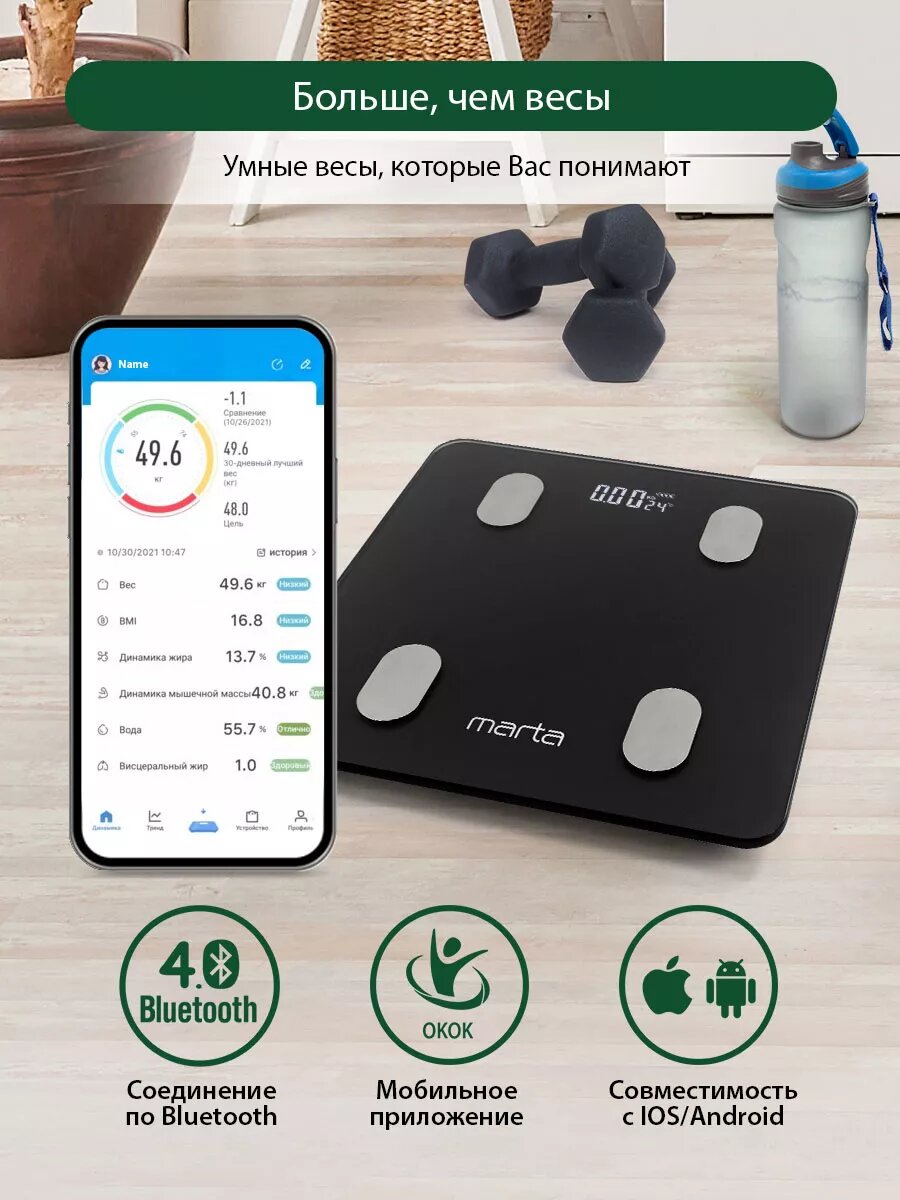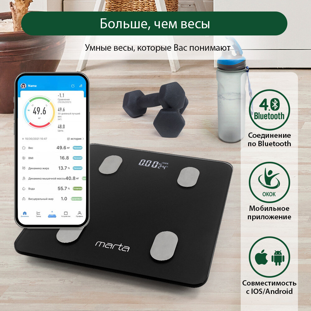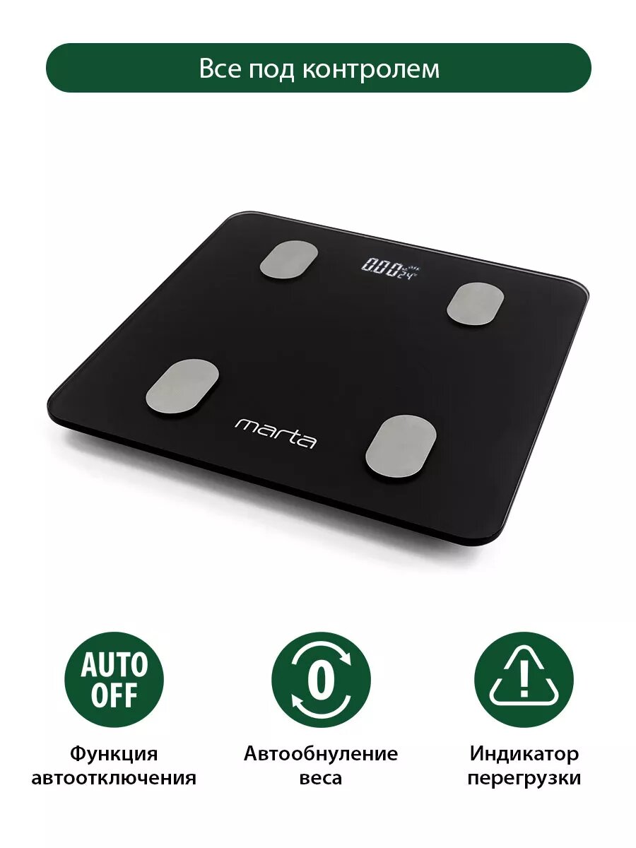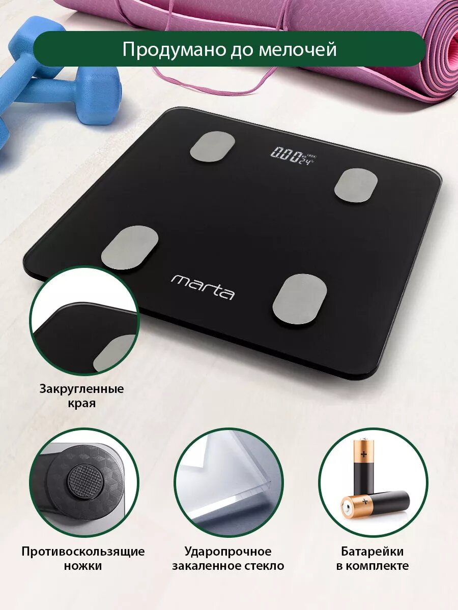 Весы напольные умные MARTA MT-1606 черный жемчуг
