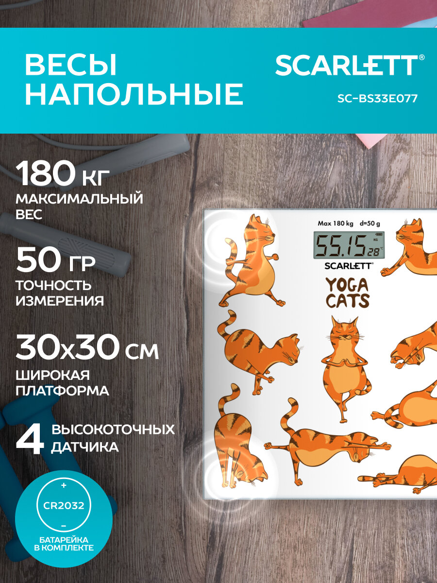 Весы напольные Scarlett SC-BS33E077 йога коты