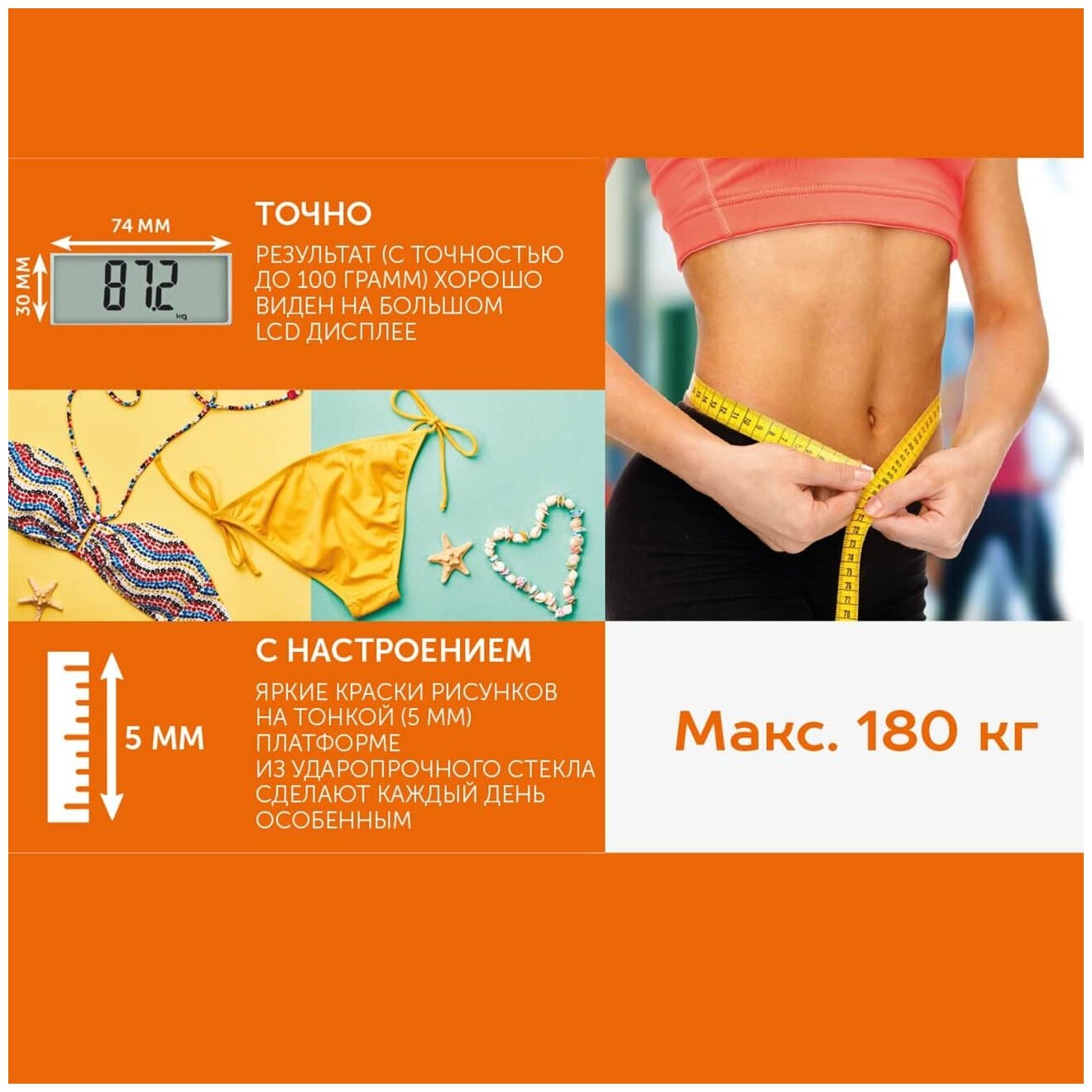 | Отзыв: | Решила отслеживать вес и купила весы с позитивным, поднимающим настроение, рисунком. Они автоматически включаются и выключаются, заряд батарейки экономно расходуется. Стекло весов прочное, ножки не скользят. |