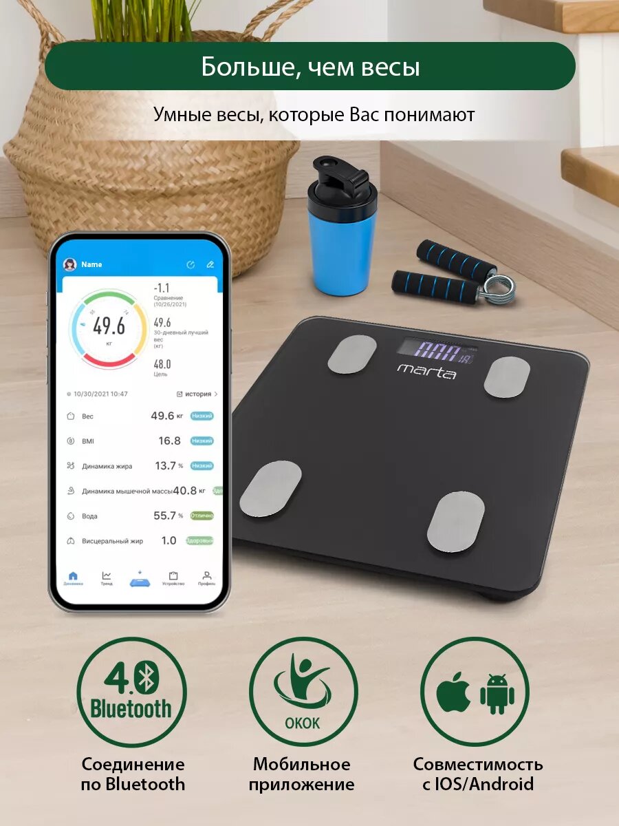 Весы умные с bluetooth напольные, 30х30 см интересное: