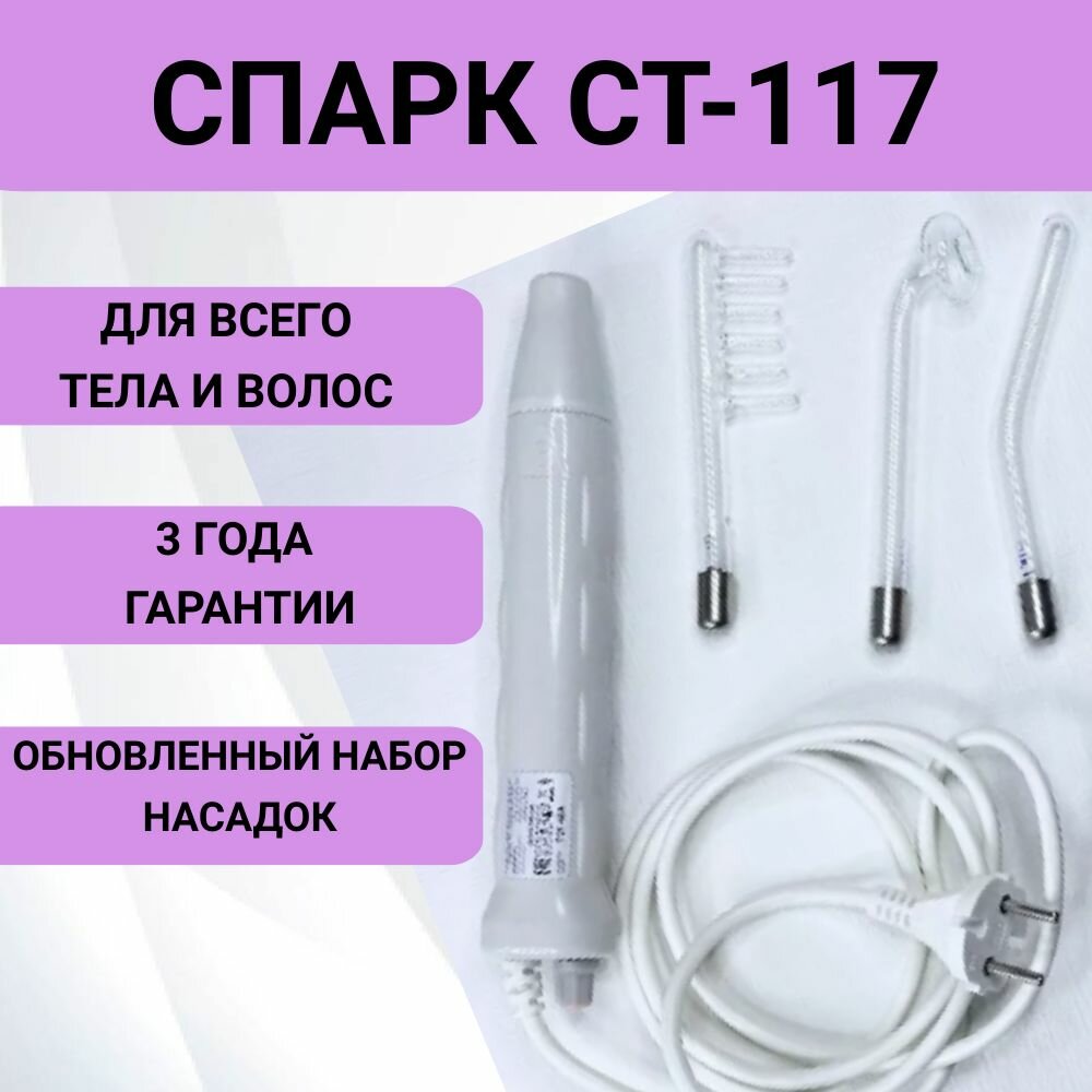 Ниже Вы можете прочитать отзывы на Дарсонваль Спарк СТ-117 с 3-мя насадками, ознакомится с подробными характеристиками, посмотреть интересные обзоры и фотографии на Дарсонваль Спарк СТ-117 с 3-мя насадками.