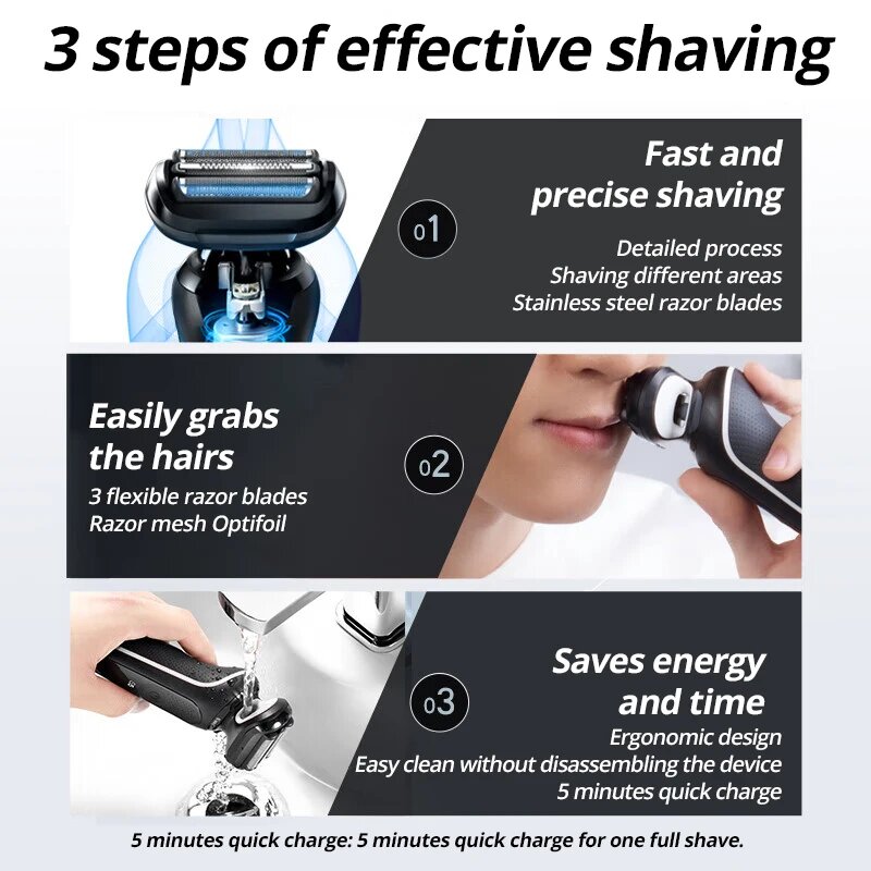 | Плюсы: | Качество и скорость бритья, скорость подзарядки, удобство мытья |