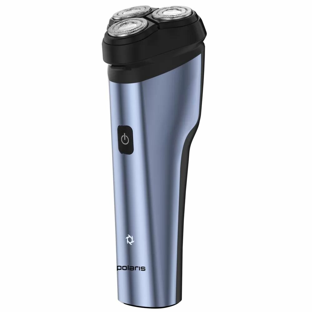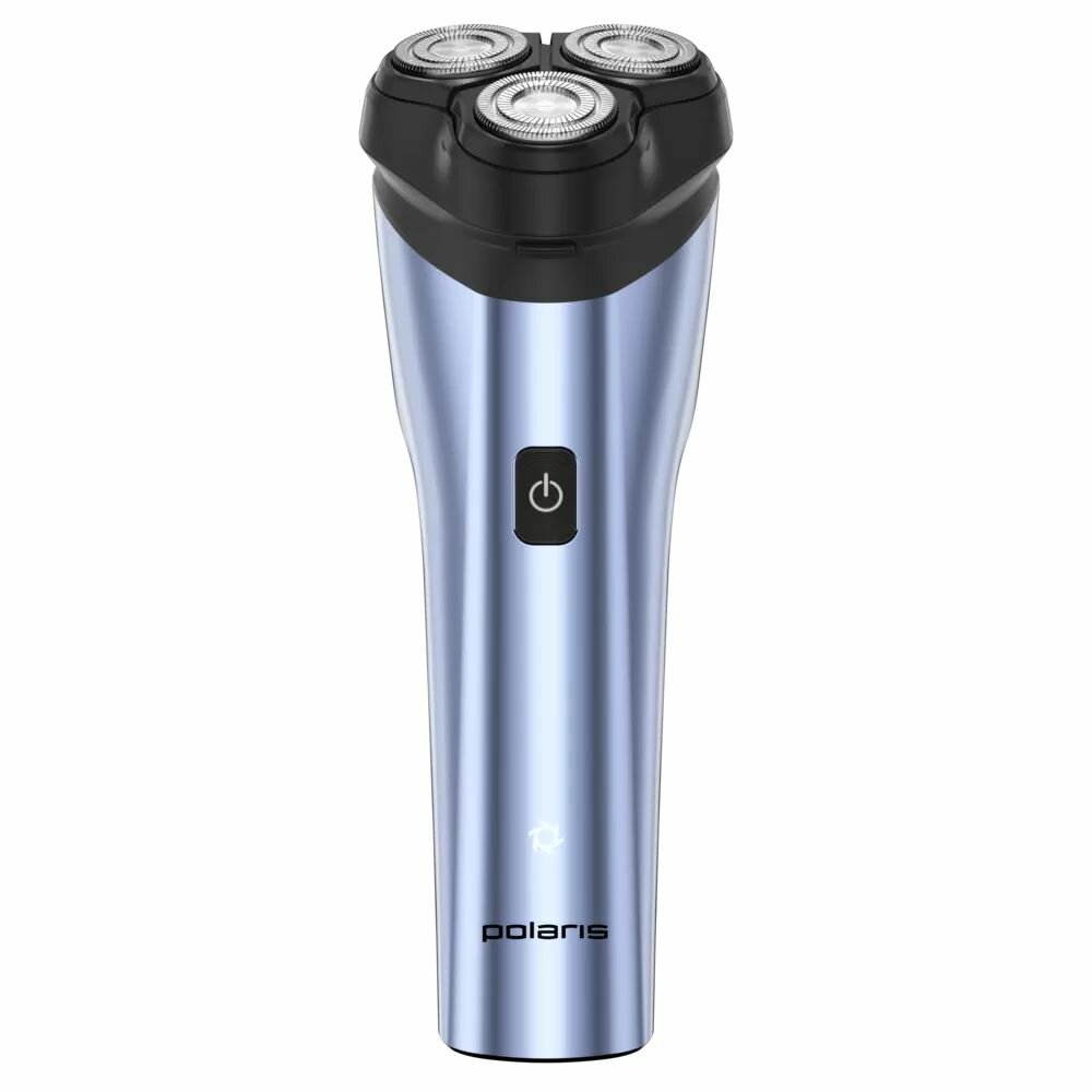 Купить Бритва электрическая Polaris, роторная, для сухого и влажного бритья, быстрая зарядка, от сети и аккумулятора, синий металлик