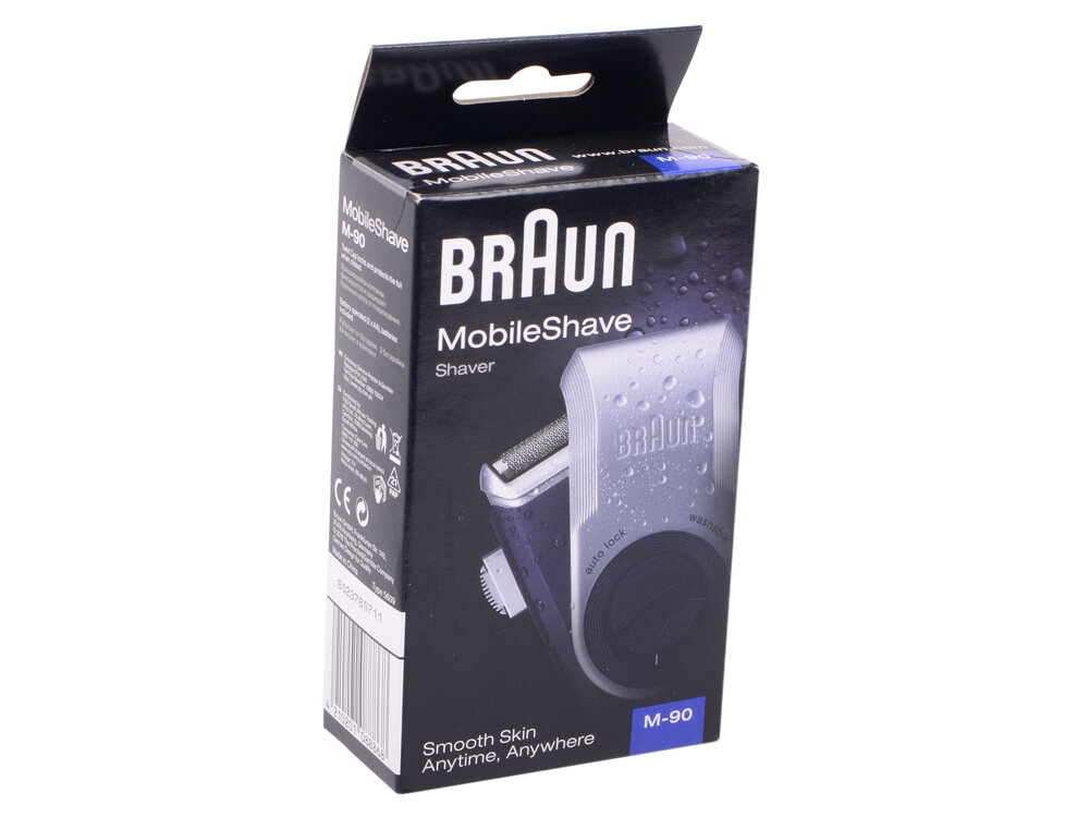 Портативная электробритва Braun PocketGo Mobile Shave, полностью моющаяся, M90, черная/серебристая интересное: