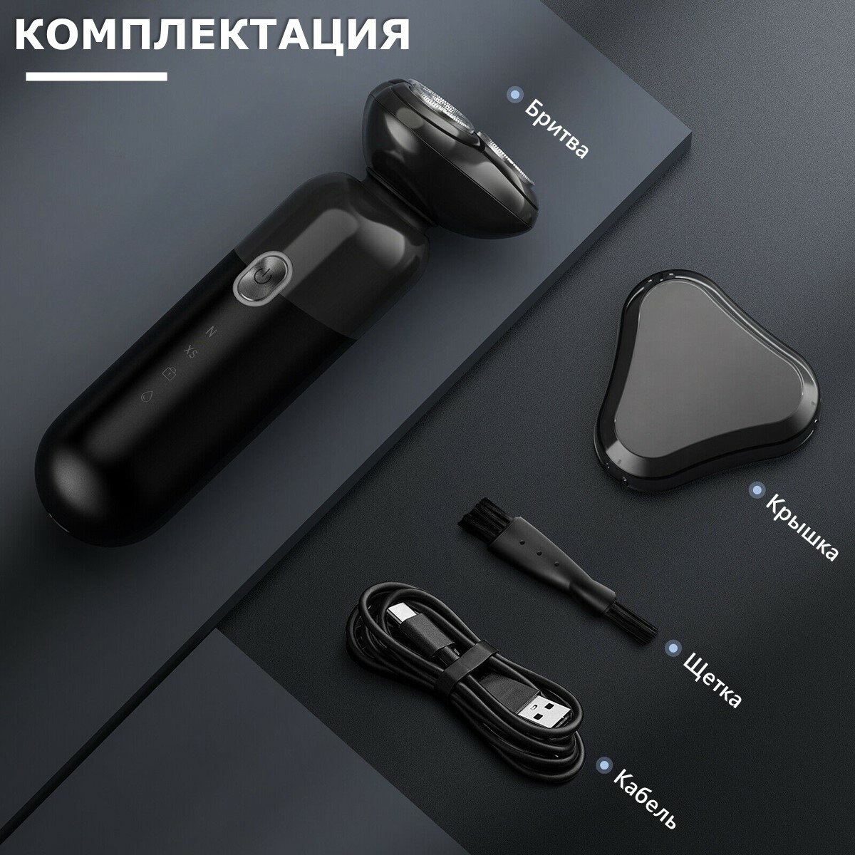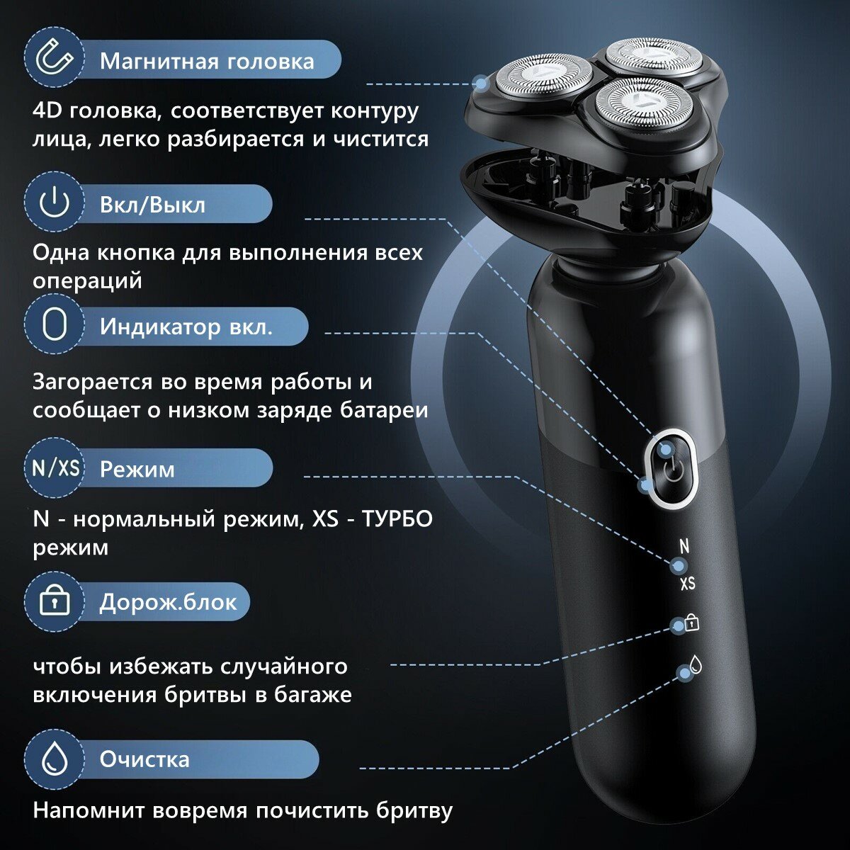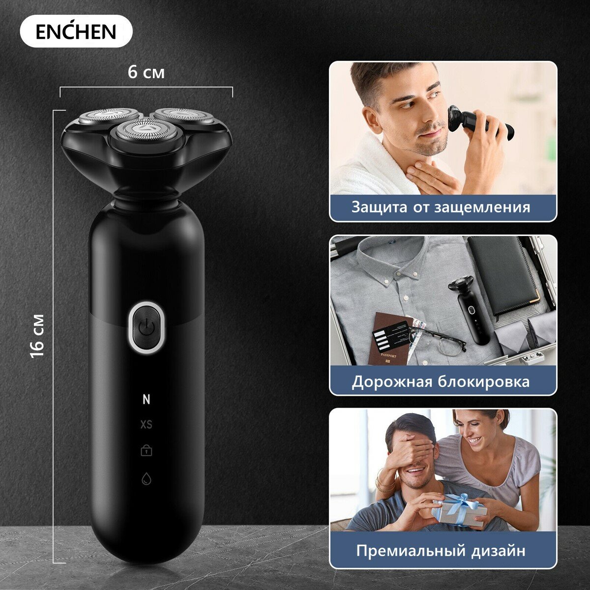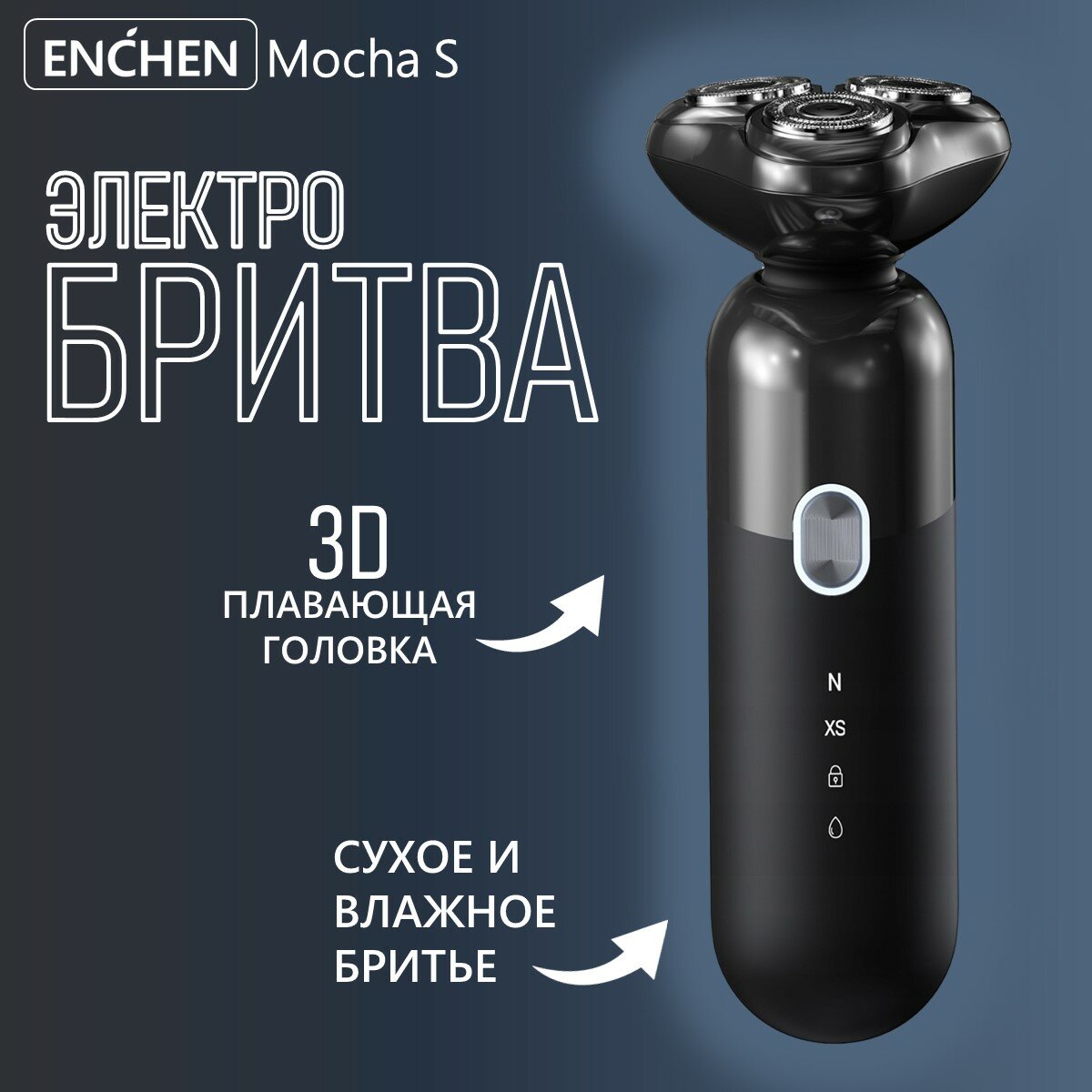 Электробритва мужская Enchen Mocha S, роторная, автономная работа, сухое и влажное бритье, черная