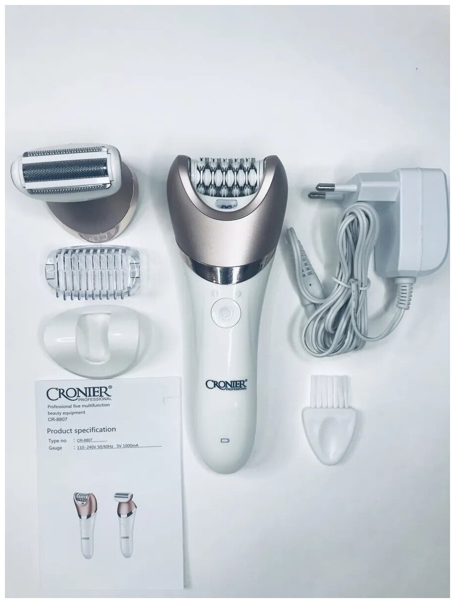Эпилятор 2 в 1 CRONIER CR-8807 / 2 насадки / 20 пинцетов / чистка под струёй воды