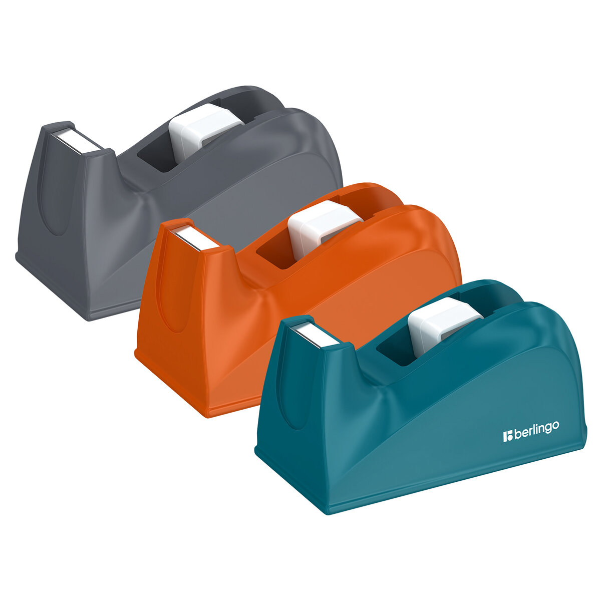 Комплект 3 шт, Диспенсер настольный Berlingo для канцелярской клейкой ленты, ассорти