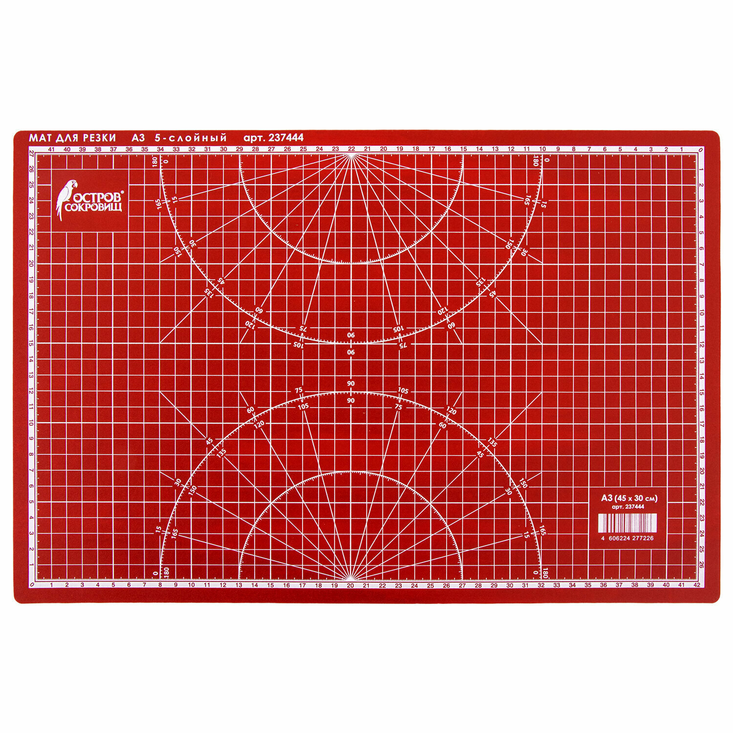 Коврик (мат) для резки остров сокровищ, 5-ти слойный, А3 (450х300 мм), двусторонний, толщина 3 мм, 237444 В комплекте: 1шт.