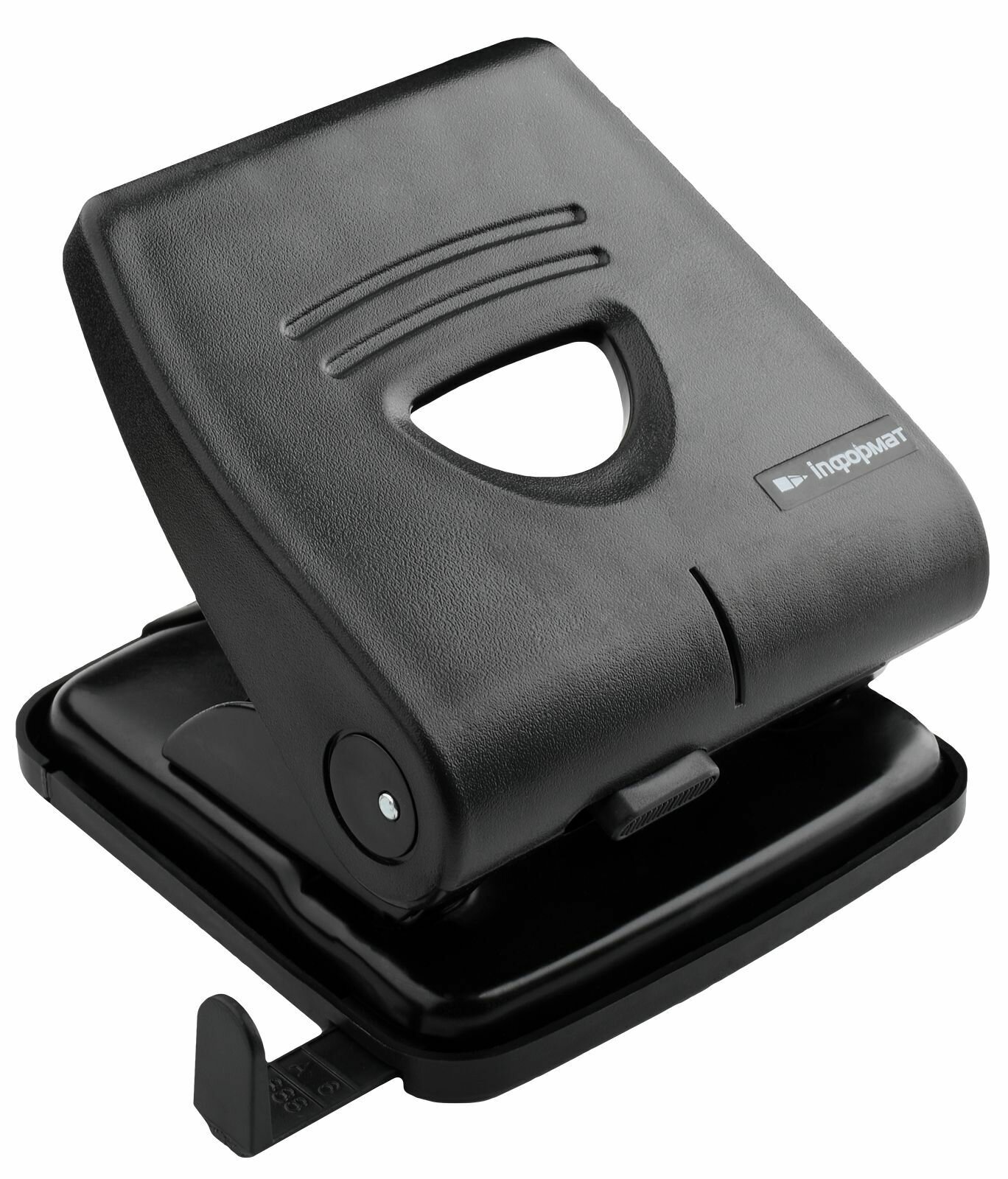 Купить Дырокол inформат "Оптима", стандартный, до 30 листов, 2 отверстия, металл, пластик, черный, линейка форматов (DOP-30K)