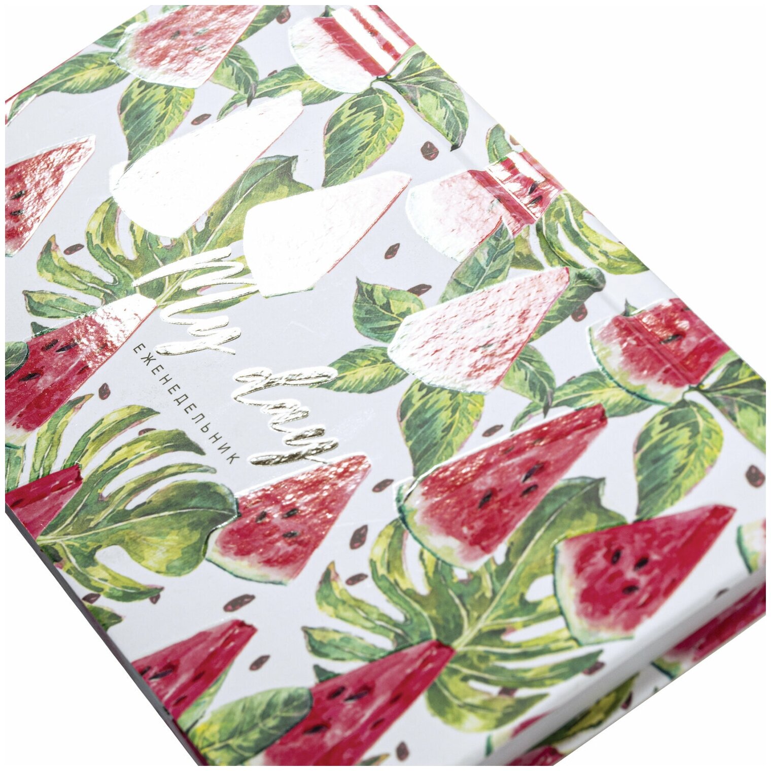 Еженедельник Brauberg недатированный с резинкой (171х93 мм), , твердый, УФ-ЛАК, 64 л, "Watermelon", 114577