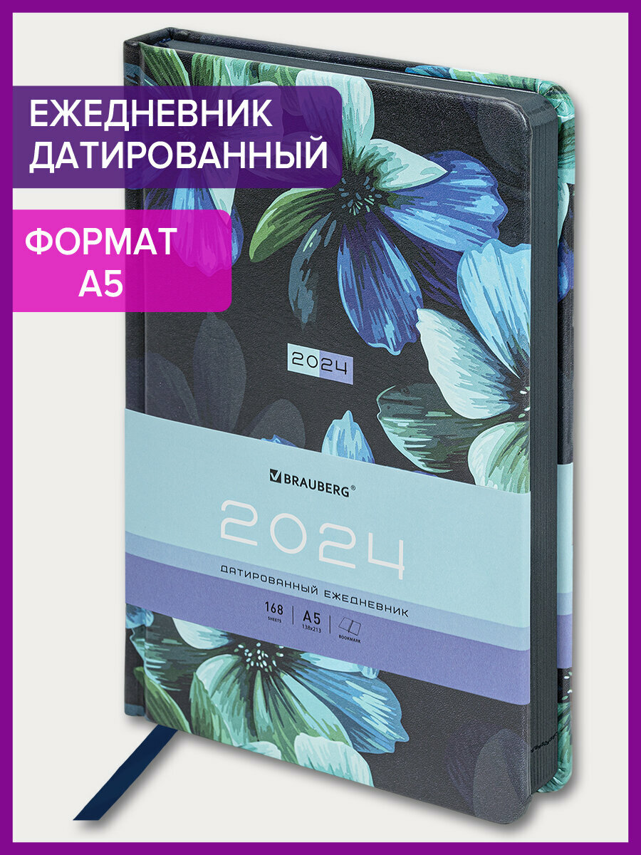 СохранитьЕжедневник датированный 2024 А5 138x213 мм Brauberg Vista, под кожу, твердый, Flowers, 114956 интересное: