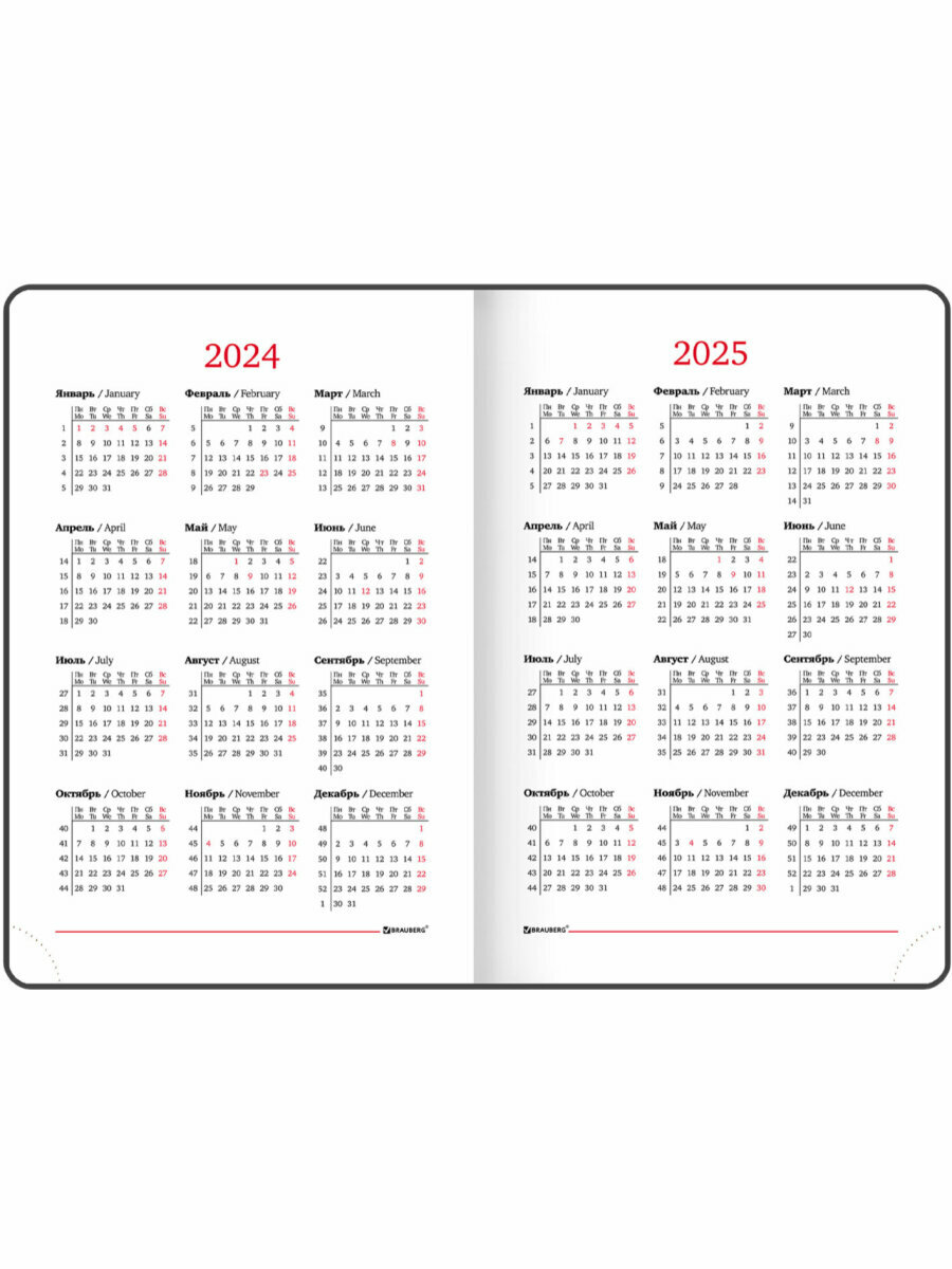 Ежедневник датированный 2024 А5 138x213 мм BRAUBERG "Vista", под кожу, "Pomegranate", 114946