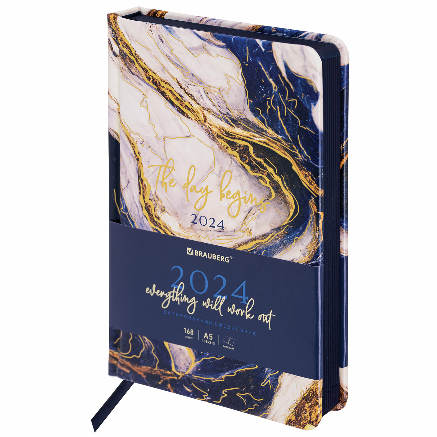 Купить Ежедневник датированный 2024 А5 138x213 мм Brauberg Vista, под кожу твердый, Мрамор, 114953