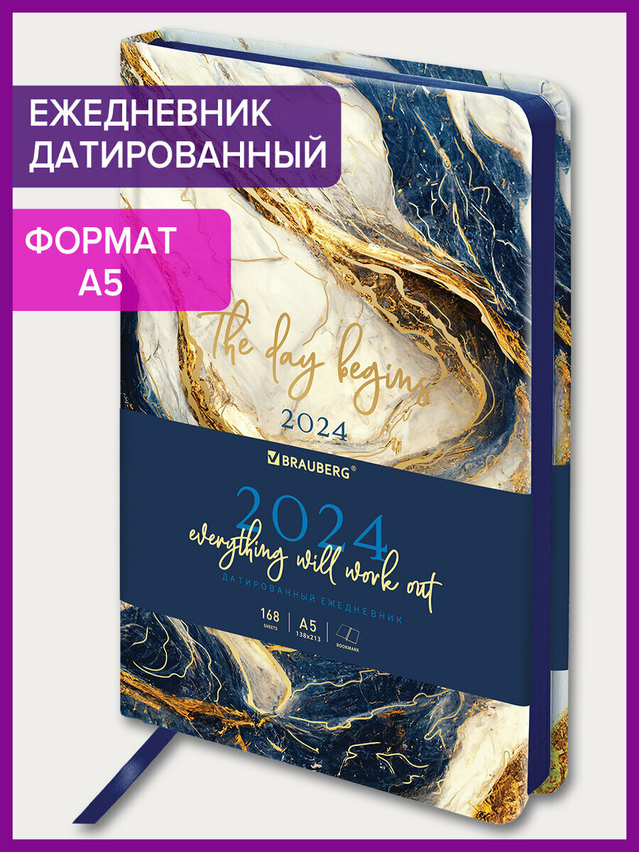 СохранитьЕжедневник датированный 2024 А5 138x213 мм Brauberg Vista, под кожу твердый, Мрамор, 114953 интересное: