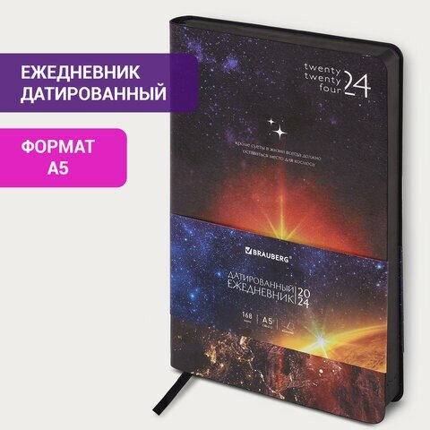 СохранитьЕжедневник датированный 2024 А5 138x213 мм BRAUBERG "Vista", под кожу, "Space", 114947 интересное: