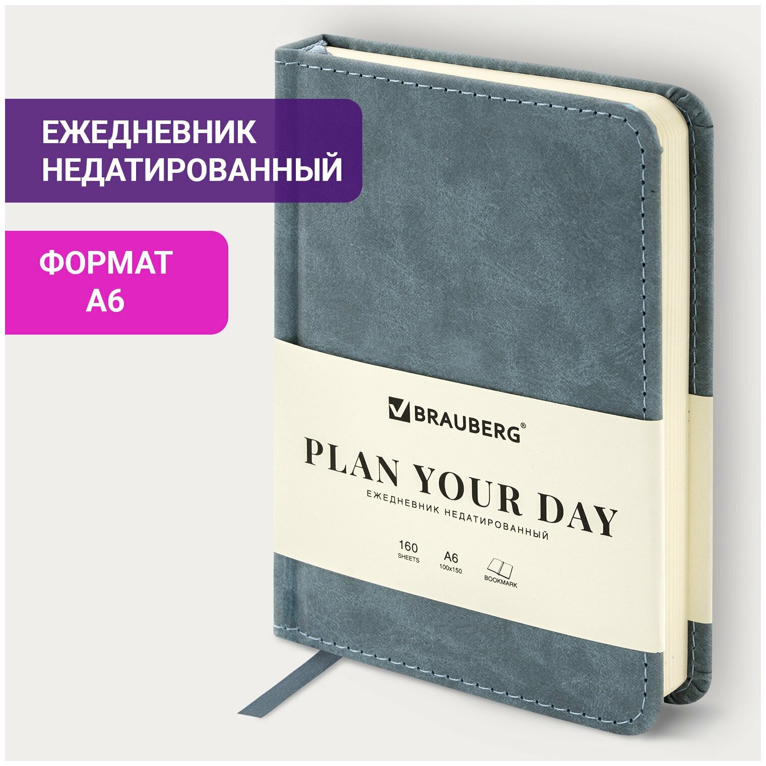 Ежедневник-планер (планинг) / записная книжка / блокнот недатированный Малый Формат 100х150 мм А6 Brauberg Status, 160 л, под кожу, серо-голубой, 113369