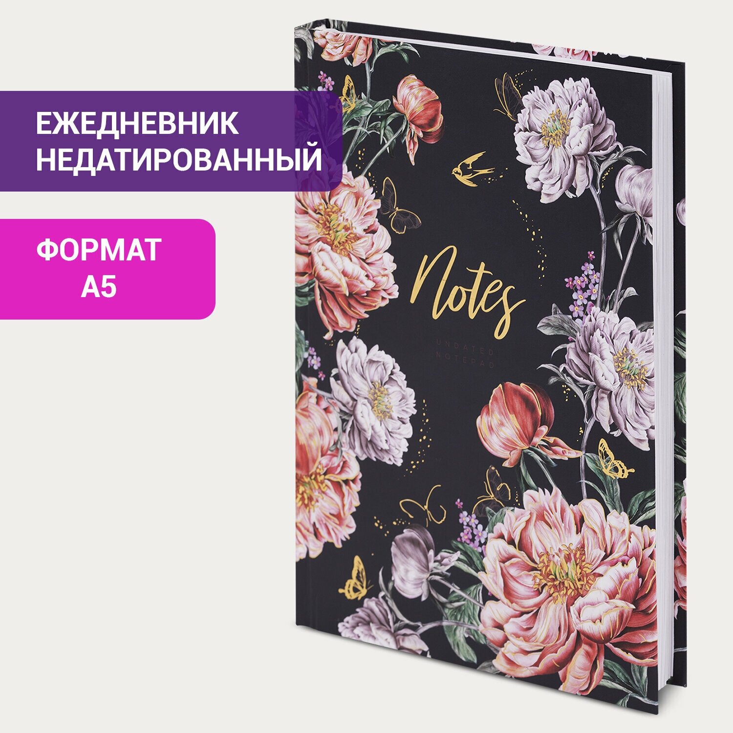 Ежедневник недатированный А5 (145х215 мм), ламинированная обложка с фольгой, 128 л., STAFF, "Flowers", 113521, 113521