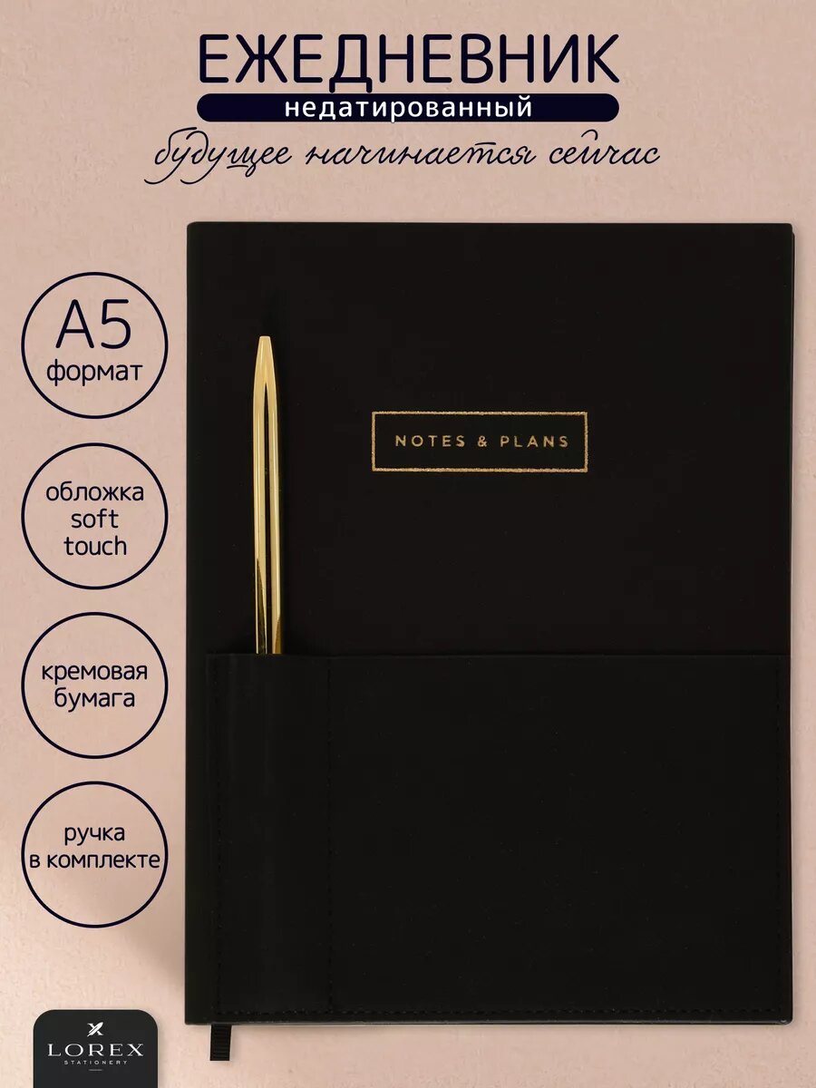 Купить Ежедневник недатированный А5, 80 листов, черный, с ручкой и карманом, LOREX