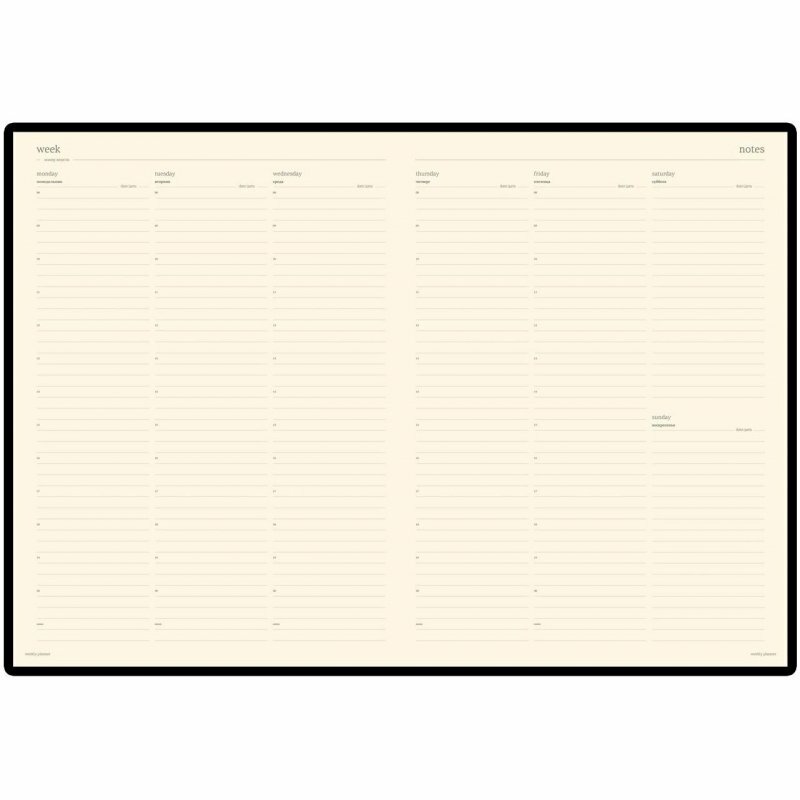 Пользуюсь им с удовольствием уже многие годы!) Не датированный, достаточно тонкий, мягкая обложка, вся неделя перед глазами! |