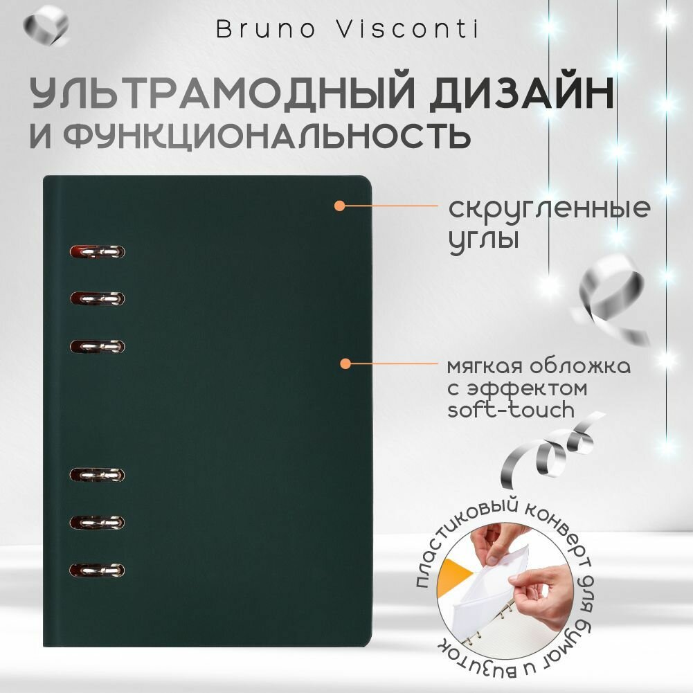 BrunoVisconti Ежедневник недатированный А5, 120 листов на кольцах FIRENZE, обложка искусственная кожа, блок 70г/м2, чёрный