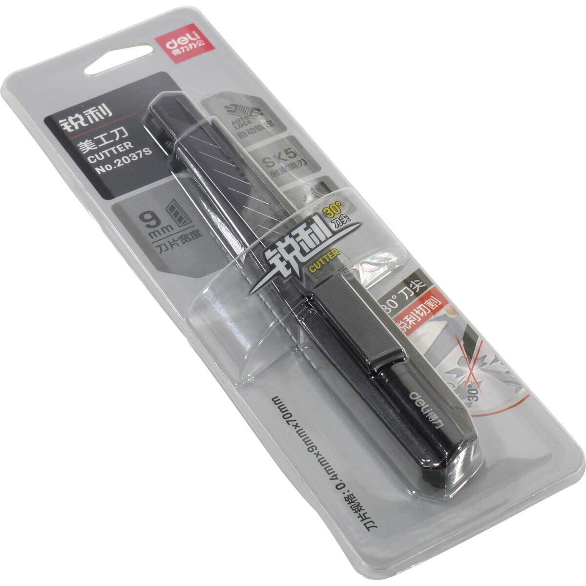 Нож канцелярский 9мм Deli 2037S, серый