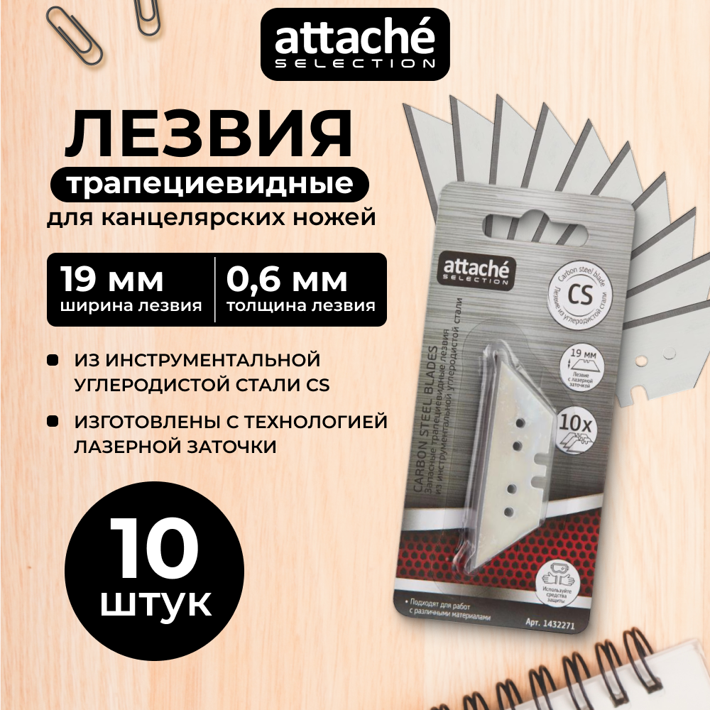 Купить Лезвия сменные для канцелярских ножей Attache Selection SX11T-10, 19 мм, трапециевидные, 10 штук в упаковке